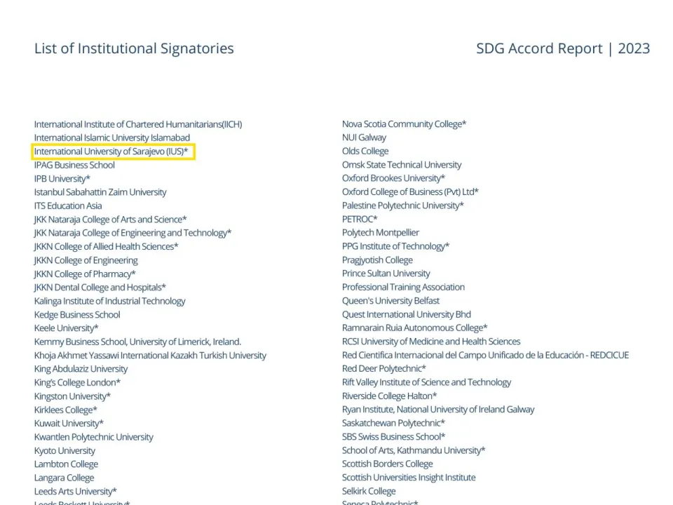 In early 2023, the International University of Sarajevo (IUS) filled out the application for membership in this initiative, met the required international standards, and became the only signatory of this international accord in the field of sustainable development from the countries of the Western Balkans.