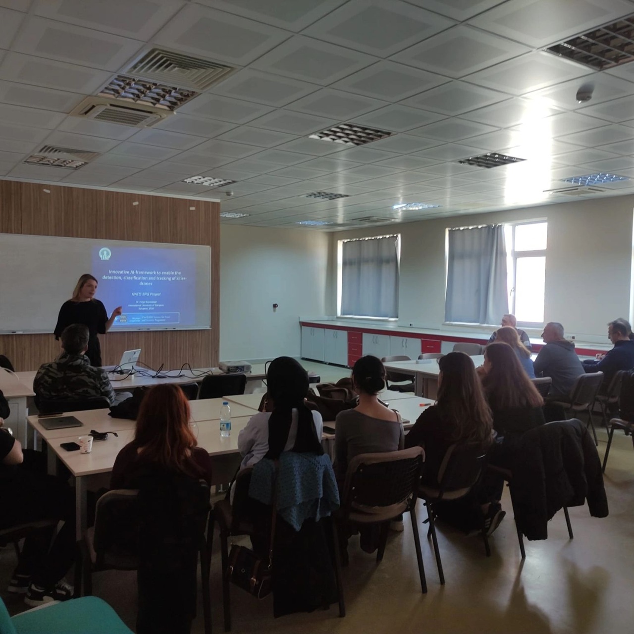 One of the highlights of Dr. Büyükdağlı's visit was her guest lecture delivered within the Computer Engineering master classes, where she presented findings and methodological insights from the Ai4CUAV project - Innovative AI-Framework to Enable the Detection, Classification and Tracking of Killer Drones, funded by NATO Science for Peace and Security (SPS). The lecture addressed AI-driven multi-sensor drone detection, a core research theme of the project, and served simultaneously as a dissemination activity under the project's outreach objectives. It drew notable interest from both students and faculty members, creating a dynamic setting for academic discussion on emerging technologies, research directions, and opportunities for future cooperation. The visit also provided an opportunity for Dr. Büyükdağlı to present the work of the IUS SDG Committee during a university-wide sustainability seminar, where she shared IUS experiences in integrating the United Nations Sustainable Development Goals into academic, research, and community engagement activities. Through these activities, the visit further highlighted IUS’s commitment to innovation, sustainability, and international academic engagement.