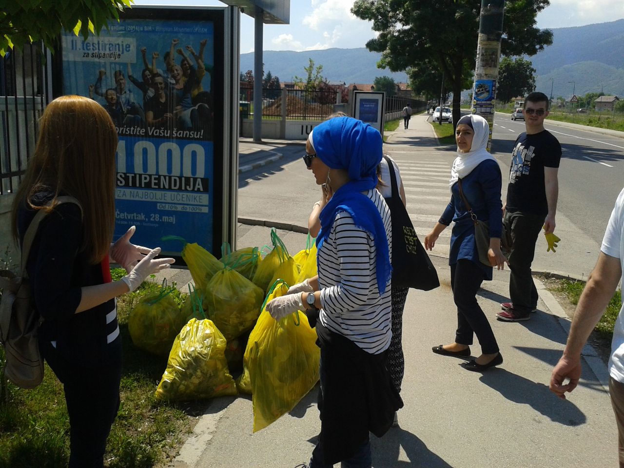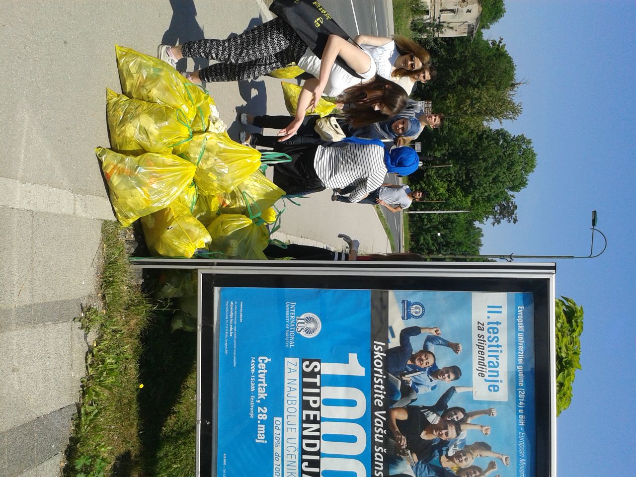 Within the IR354 (Global Environmental Issues) course students of the International University of Sarajevo (IUS) participated in cleaning action with Nerkez Opačin, Senior Assistant on Monday, June 1, 2015. This project focuses on planning and environmental protection. Students and Senior Assistant Opačin came up with the idea to clean up the garbage between IUS Campus and the bridge in Ilidža. The objective was to make the environment more beautiful and accessible but also show others that it is the environment we all share and must care about. What is also important to mention is that within the same project IUS secured bins for recycling paper and plastic waste. Participants of the action sincerely hope that these and similar actions will continue to be organized with participation of young people in the future.