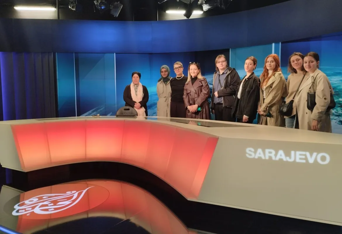 Within the Politics and Media (POLS211) course, IUS students visited the Al Jazeera Balkans studio with their lecturer, Professional Associate Serap Fišo. The students were welcomed by Ms. Melina Kamerić, Public Relations and Communications Specialist at Al Jazeera Balkans.