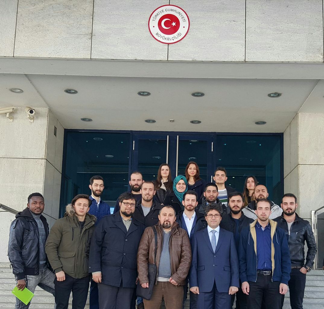 Assoc. Prof. Dr. Ali Çaksu, Assist. Prof. Dr. Joseph Jon Kaminski, and Assistant Hamza Preljević coordinated a visit for students in International Relations Department, Faculty of Business and Administration (FBA), to the Embassy of the Republic of Turkey in Sarajevo on 26th April 2016.