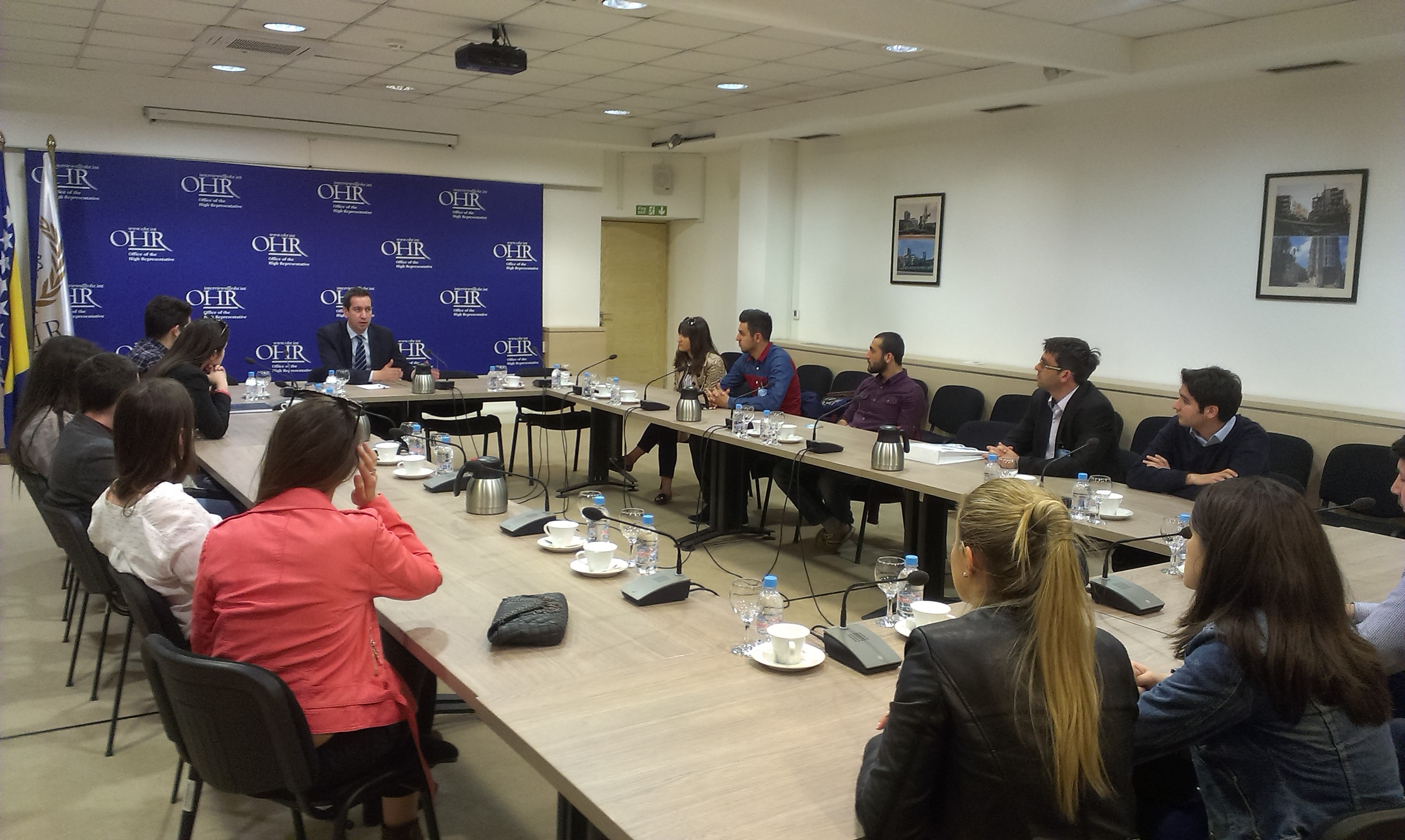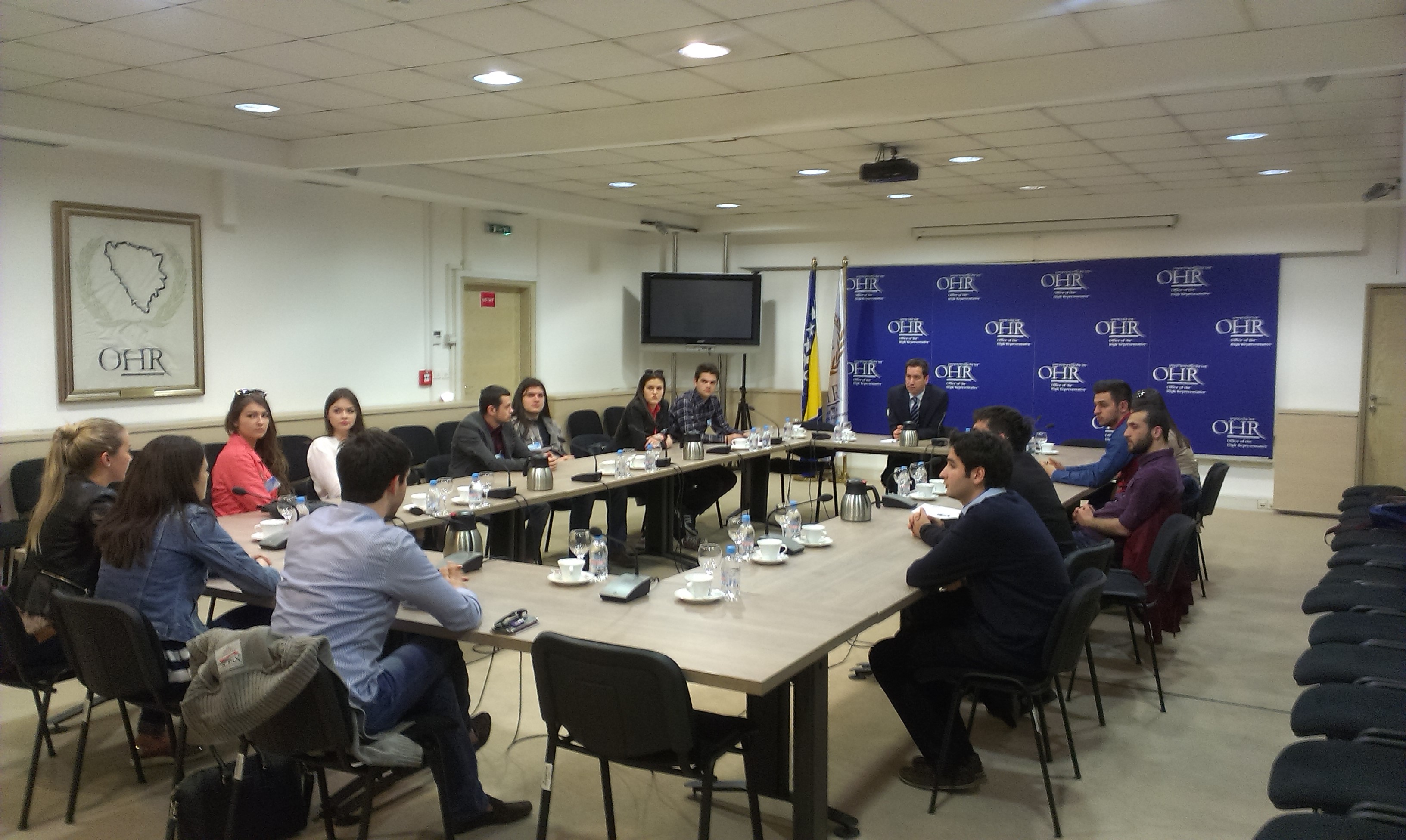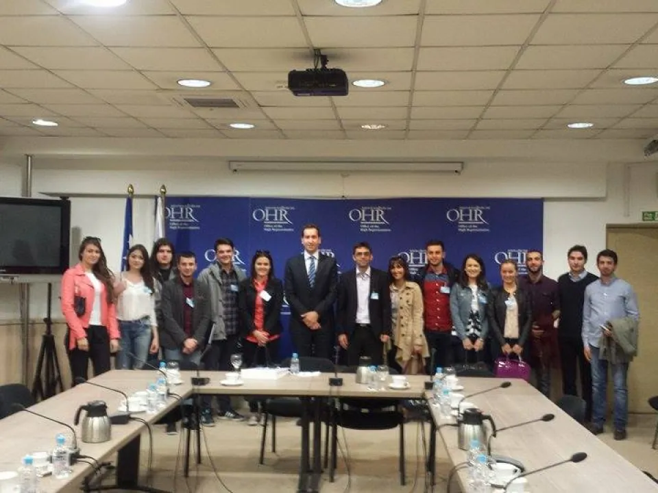 On Tuesday, April 21st, 2015, students from the Departments of International Relations and Diplomacy, and Social and Political Science, with Senior Assistant Ahmed Kulanić, visited the Office of High Representative (OHR) in Sarajevo. The aim of the visit was to familiarize IUS students about the post-conflict role of OHR in Bosnia and Herzegovina, and to give an overall picture of OHR role in the current political life in Bosnia and Herzegovina. The visit was organized by Hamza Preljević, senior year student at the department of International Relations and Diplomacy.