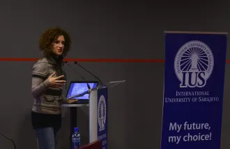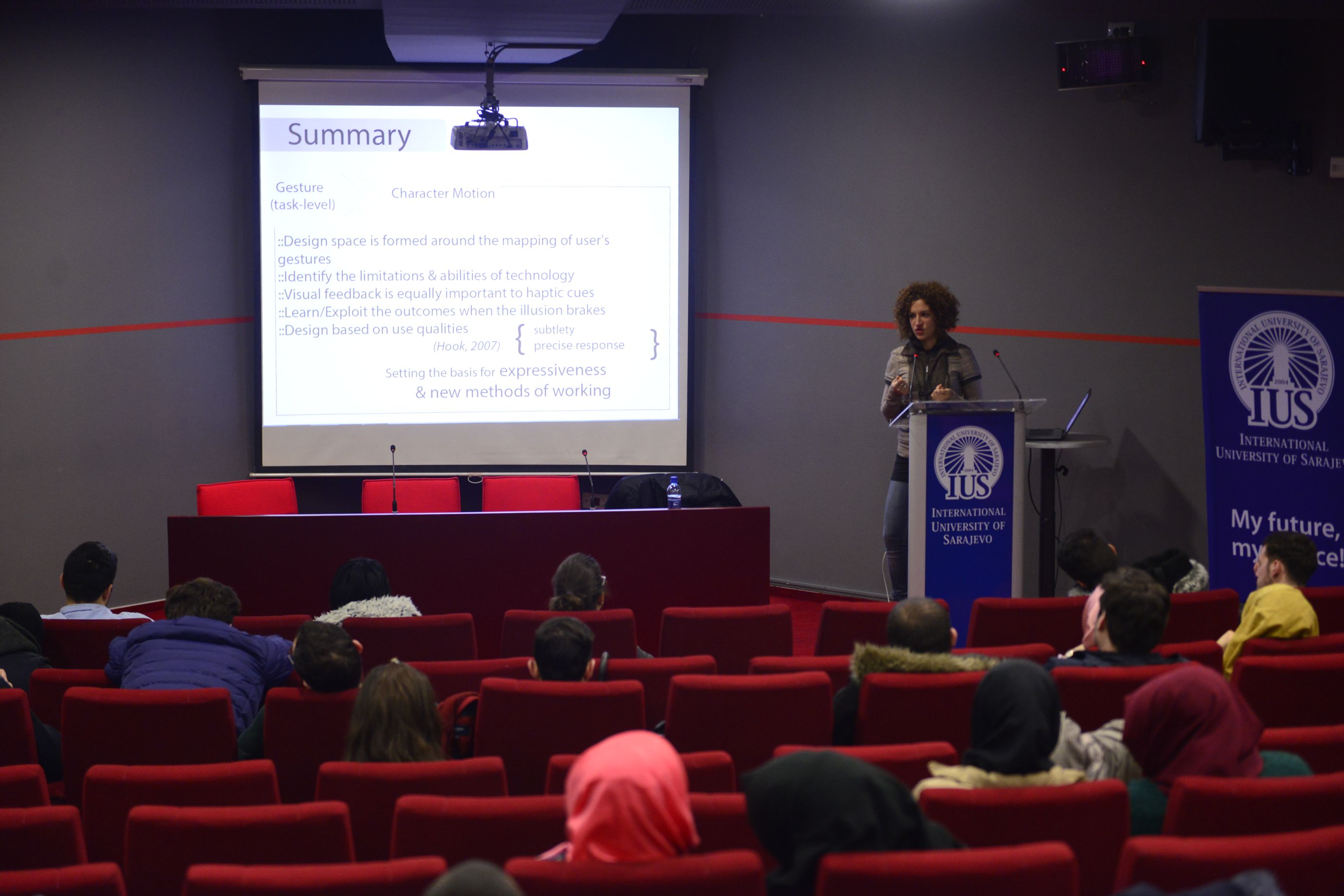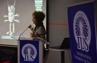 On Thursday, March 10th, 2016, Dr Mariza Dima from Queen Mary University of London gave a lecture on embodied cognition and connection between cognitive psychology, computer science and design. The lecture was held in the main IUS amphitheatre and attended by a huge number of academics and students of psychology, linguistics, political science and visual arts.