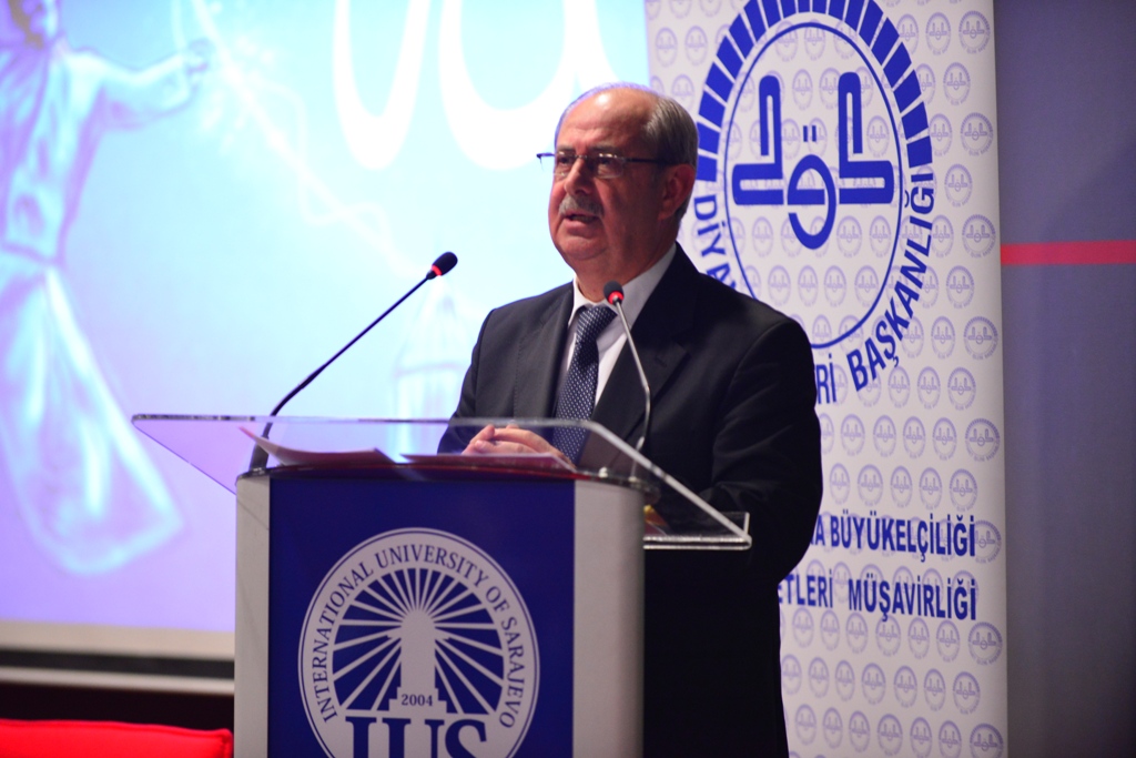Mr. Hasan Atli, Attache for Religious Affairs at the Embassy of the Republic of Turkey to B&H gave a lecture titled “Morality of Living Together” at the International University of Sarajevo (IUS) on Tuesday April 28, 2015. ÇATI Club with support of the Turkish Embassy and IUS organize this event. During the lecture, Hasan Atlı spoke about mutual, multireligious and multiethnic tolerance based on religious sources. At the end of the lecture, Dean of Faculty of Business and Administration (FBA), Assoc. Prof. Dr. Hasan Korkut expressed his graditude to Hasan Atli for giving kind advise to IUS students.