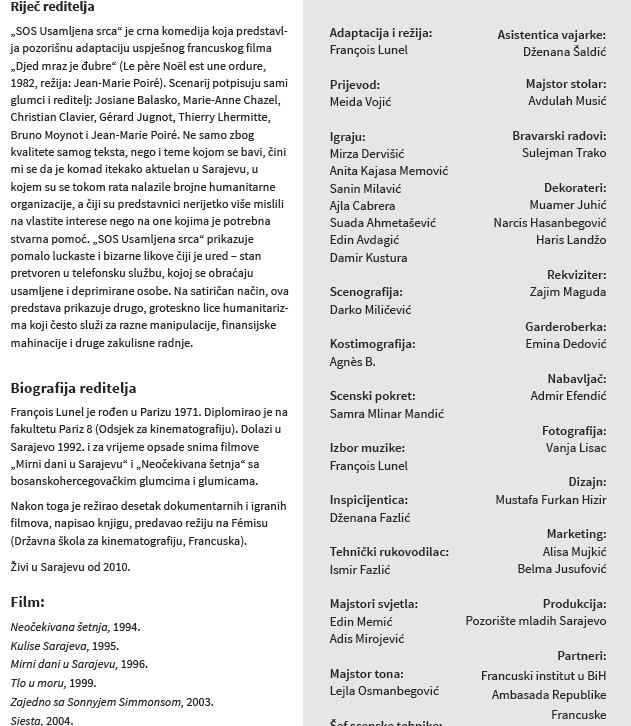 Theater performance SOS Usamljena srca (SOS Lonely Hearts) premieres in the Youth Theater Sarajevo on Thursday, March 8, 2017. Expert in practice M. Furkan Hızır made the visual face of the promo material for this black comedy directed by François Lunel.
