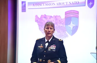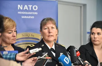 In her presentation, Brigadier General Bissel talked about the course of the events related to the BiH integrations in NATO, about the current relations between BiH and NATO, to which point BiH came in the process to become a member, and why is membership in the alliance important and beneficial to BiH.