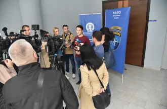 Rector of International university of Sarajevo and Brigadier General Bissel gave statements to a large number of media representatives, and the president of student parliament of IUS Ismail Ćidić also gave a statement.