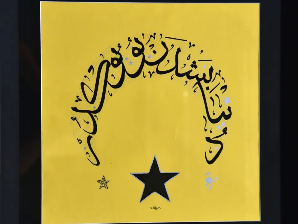 “Although I’m a business student, I am also an artist calligrapher and like to spend my spare time creating a new and creative design with Arabic letters. I had many artworks being presented to different elites including ministers, ambassadors. However, giving my recent artwork to Erdogan is a unique and unimaginable moment in my life. What I actually wrote in this artwork is a famous sentence of Erdogan’s speech when he stated “The world is bigger than five” reflecting on the five countries with Veto power. That sentence shook me up and I decided to draw it in the shape of Turkish flag (crescent & star)”.