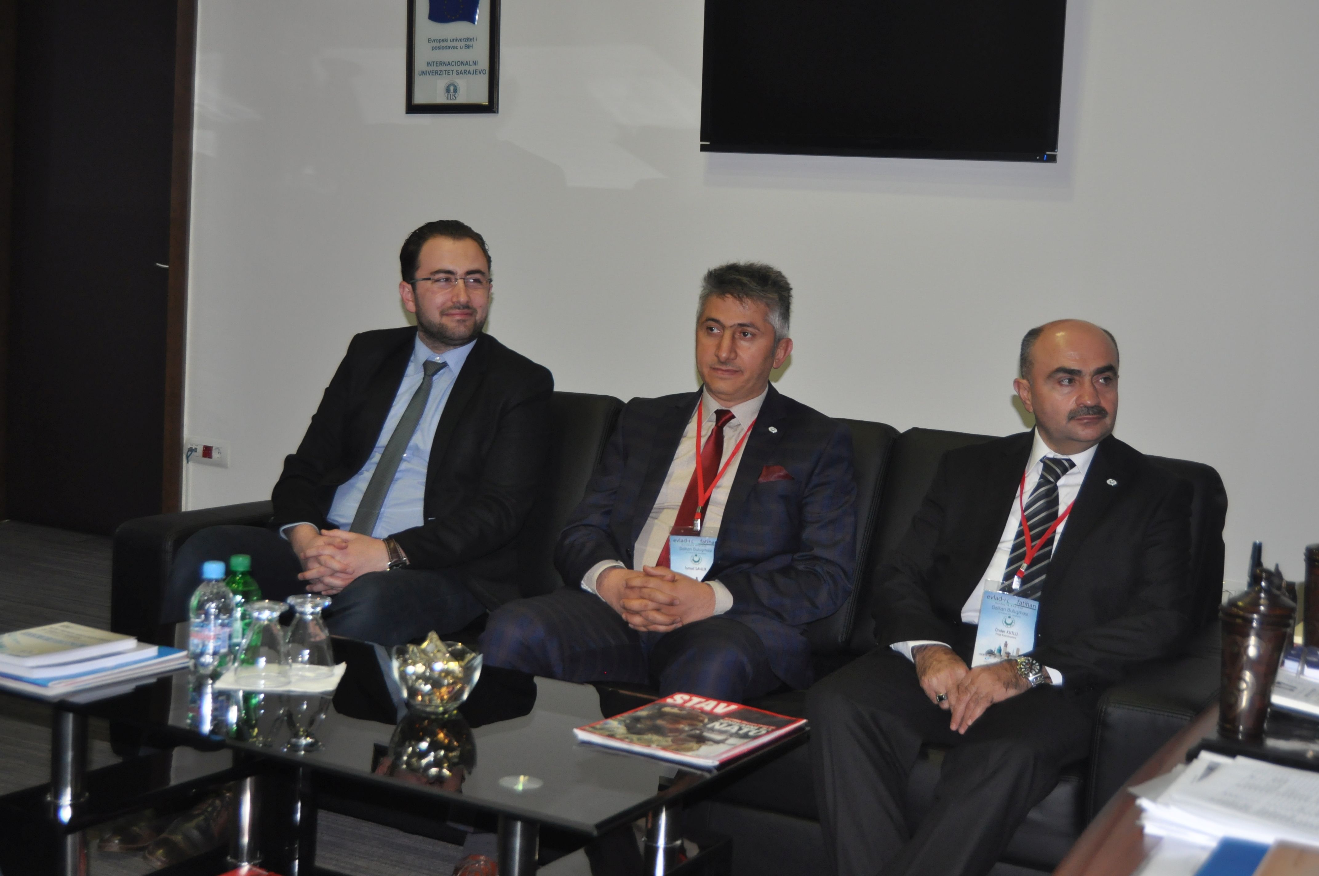 During the meeting, Rector Oğurlu talked about successful cooperation between the city of Sarajevo and the city of Konya, and briefly presented information about the University, its history, newly opened faculties as well as successfully established international cooperation with many international institutions and organizations in the higher education field. Distinguished guests were very pleased to visit the IUS and impressed with the facilities and success of the University. They have expressed hope that in the future mutual cooperation between IUS and institutions from Turkey will be established. On behalf of the IUS following representative attended the meeting as well: Vice Rector for International Cooperation and Research Assoc. Prof. Dr. Ali Gürsel, Vice Rector for General Affairs, Assist. Prof. Dr. Muhamed Ali, Dean of the Faculty of Business and Administration (FBA), Assoc. Prof. Dr. Hasan Korkut, Dean of the Faculty of Engineering and Natural Sciences (FENS), Prof. Dr. Fuat Gürcan and Secretary General of the IUS, Emir Hadžikadunić.