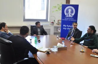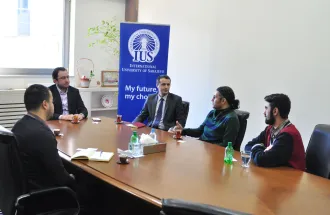 The delegation of the Selcuk University from the city of Konya (Turkey) visited the International University of Sarajevo (IUS) on Thursday, February 12, 2015. The delegation consisted of: Assoc. Prof. Dr. Fuat Boyacioğlu, Erasmus + Coordinator, İlyas Ferhat Demirbaş, Coordinator of the Erasmus + program and youth programs, and Assoc. Prof. Dr. Susran Erkan Eroğlu, Deputy Coordinator. Suad Muhibić, Director of the Erasmus + Office of BiH also came along with guests from Turkey. IUS International Relations Office has organized a visit of the delegation of Selcuk University.
