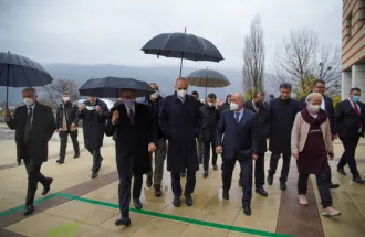 On November 8, 2021, a Turkish delegation led by Mr. Numan Kurtulmuş, the Deputy Chairman of AK Party, visited International University of Sarajevo (IUS). The other members of the delegation were Mr. Efkan Ala, the Deputy Chairman of AK Party, Mr. Refik Özen, the President of Turkish-Bosnian Friendship, Mr. Mahir Ünal, Member of Parliament of AK Party in the Grand National Assembly of Turkey, Mr. Sabri Demir, the Counselor in the Presidency of the Republic of Turkey and Mr. Hasan Topaloğlu, the President of the Foundation for Education Development Sarajevo (SEDEF).