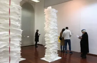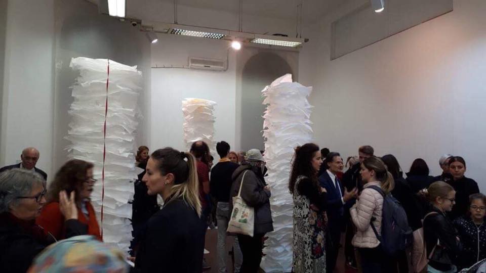 “Beyond the Shape” is a dialogue between the two artists. As Dr. Rosana Ratkovčić from University North (Croatia) said in the opening: “Iconoclastic and minimalist whiteness of blank paper and canvas, which the two artists use to communicate, represents the warning against the loss of key values that once formed our culture, and it is a reminder of spiritual values inherent in blankness and abstraction.”
