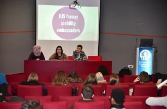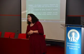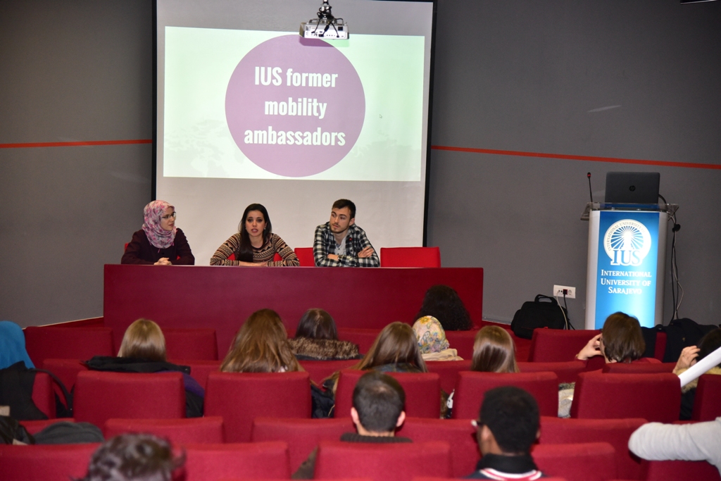 The highlight of the event were the „IUS Exchange Ambassadors“ – former exchange students who generously shared their experiences with their collegues. They took the stage and gave thorough advice on what exchange students could expect from their visit, how they should organize their time and activities. As Samra Hodžić, former exchange student to Turkey said, ERASMUS+ exchange changed her immensly and opened the door for new exchange experiences and internship opportunities. Iman Hasanbegović, a student who went on exchange to Poland, enthusiastically called upon her colleagues to apply for exchange as she said this is a „once-in-a-lifetime chance.“