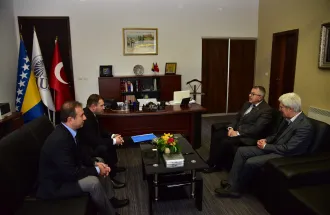 On Wednesday, October 12, 2016, the new director of TIKA Prof. Dr. Birol Çetin and his assistant Nedžad Avdić visited the International University of Sarajevo. The delegation was welcomed by IUS Rector Prof. Dr. Tahsin Erkan Türe and Vice-Rector Assoc. Prof. Dr. Ali Gürsel.