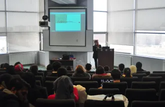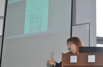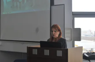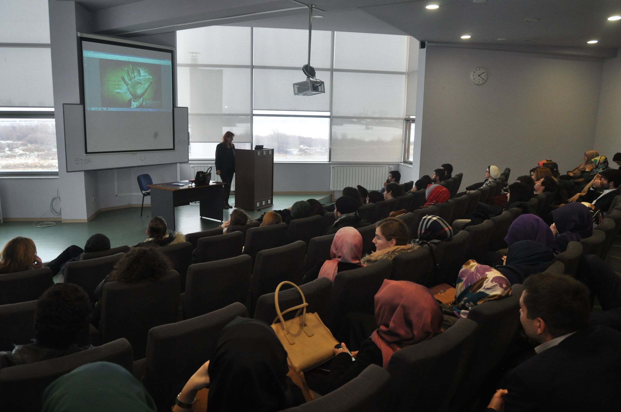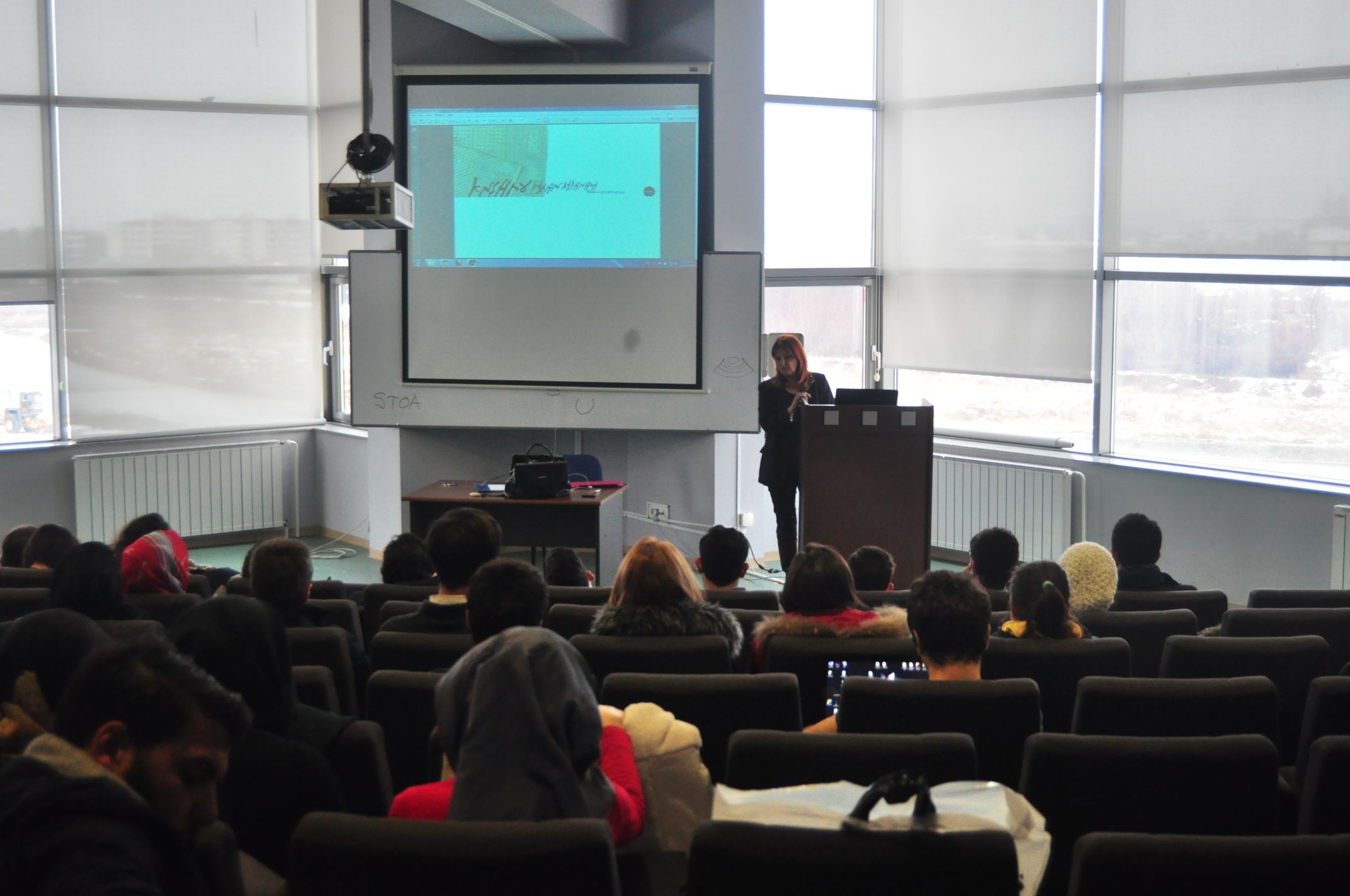 Prof. Amra Zulfikarpašić gave a lecture titled “Posters Role in the Promotion of the City of Sarajevo” in the amphitheater of the International University of Sarajevo (IUS) on Friday, December 26, 2014. Well- known Bosnian conceptual artist and designer, Amra Zulfikarpašić is a professor at the Graphic Design Department of the Academy of Fine Arts in Sarajevo. During the lecture she presented her work to students and professors.