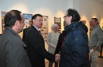 The opening ceremony of the exhibition of info graphics took place on Wednesday 24th of February 2016 at 10:30 am in the art gallery of International University of Sarajevo, as a part of activities of CREDU group which Assoc. Prof. Dr. Lejla Panjeta founded. The exhibition ‘Theory of film and visual arts’ opened with short documentary film called “Disney’s Dark Kingdom” which talks about the creator of the fairytales of our generation in a controversial way. Info graphics from theory of film and visual arts originated towards researches and published works of professor Panjeta. The main designer is Zlata Delić. Topics of works are from the field of film and cultural studies and the project was supported by the Canton Ministry of culture and sports. On this occasion minister Kurić visited IUS and emphasized the importance of education and academic approach for basic professional practice in visual and film arts, especially for young authors and artists.
