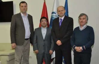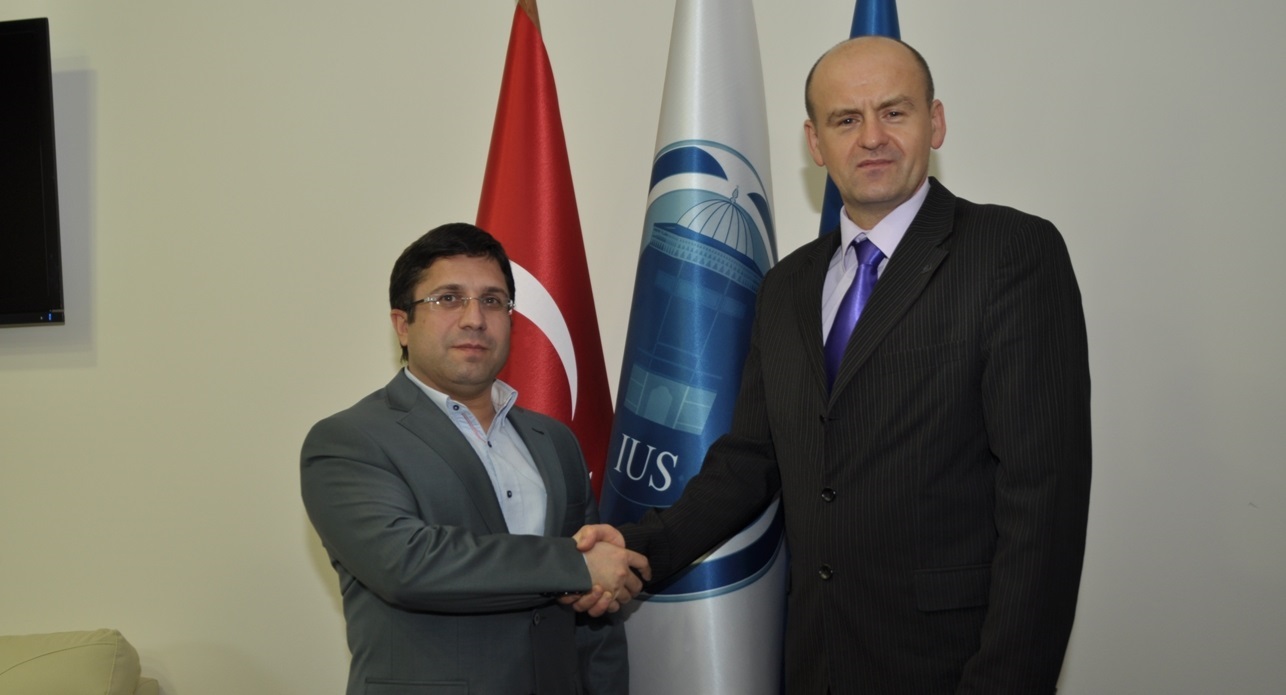 On Monday, April 21st, 2014, the president of the NGO “European Movement in BiH”, Predrag Praštalo visited the International University of Sarajevo. Distinguished guest was welcomed by the Rector of the International University of Sarajevo, Prof. Dr. Yücel Oğurlu, Vice-Rector for International Cooperation and Research at IUS, Assoc. Prof. Dr. Recai Aydin, Rector’s Advisor, Assoc. Prof. Dr. Hasan Korkut and Secretary General Mr. Emir Hadžikadunić.