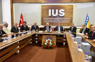 After his speech, PM Binali Yıldırım recieved a picture of Sebilj which is the symbol of Sarajevo by IUS Acting Rector Pr. Dr. Ahmet Yıldırım. The delegation that included Deputy Prime Minister Recep Akdağ, Minister of Foreign Affairs Mevlüt Çavuşoğlu, Minister of Economy Nihat Zeybekçi, Minister of Transport, Maritime Affairs and Communications Ahmet Arslan, Director of Religious Affairs Ali Erbaş, AKP Group Deputy Chairman Mustafa Elitaş and Ambassador of Republic of Turkey in Bosnia and Herzegovina Haldun Koç departed from IUS afterwards.