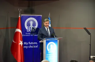 After the opening speech delivered by IUS Acting Rector Pr. Dr. Ahmet Yıldırım, Chairman of the Council of Ministers of Bosnia and Herzegovina Dr. Denis Zvizdić talked about the importance of IUS for Turkey and Bosnia and Herzegovina, and quality of SEDEF in the education.
