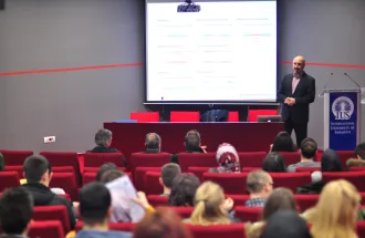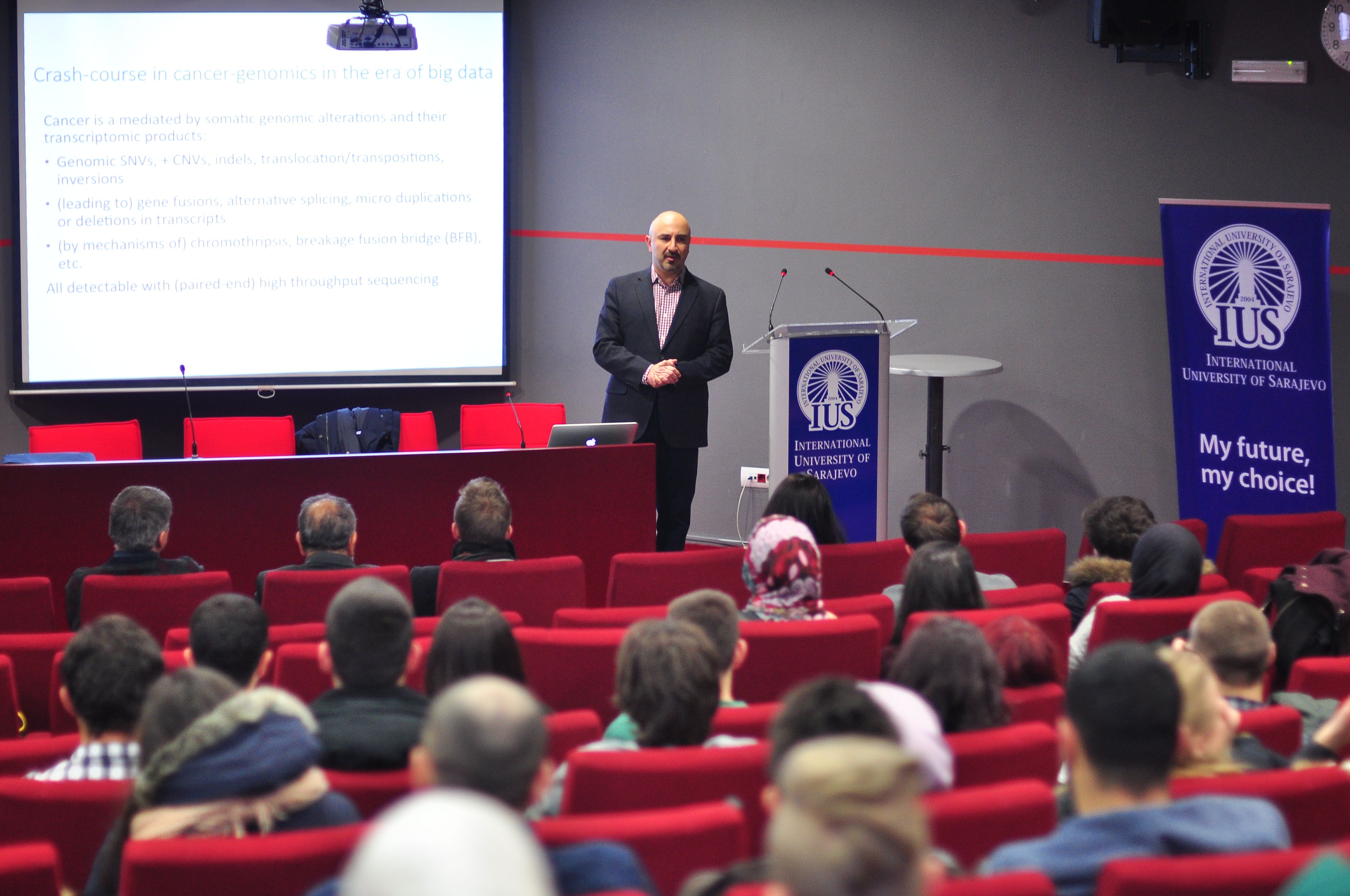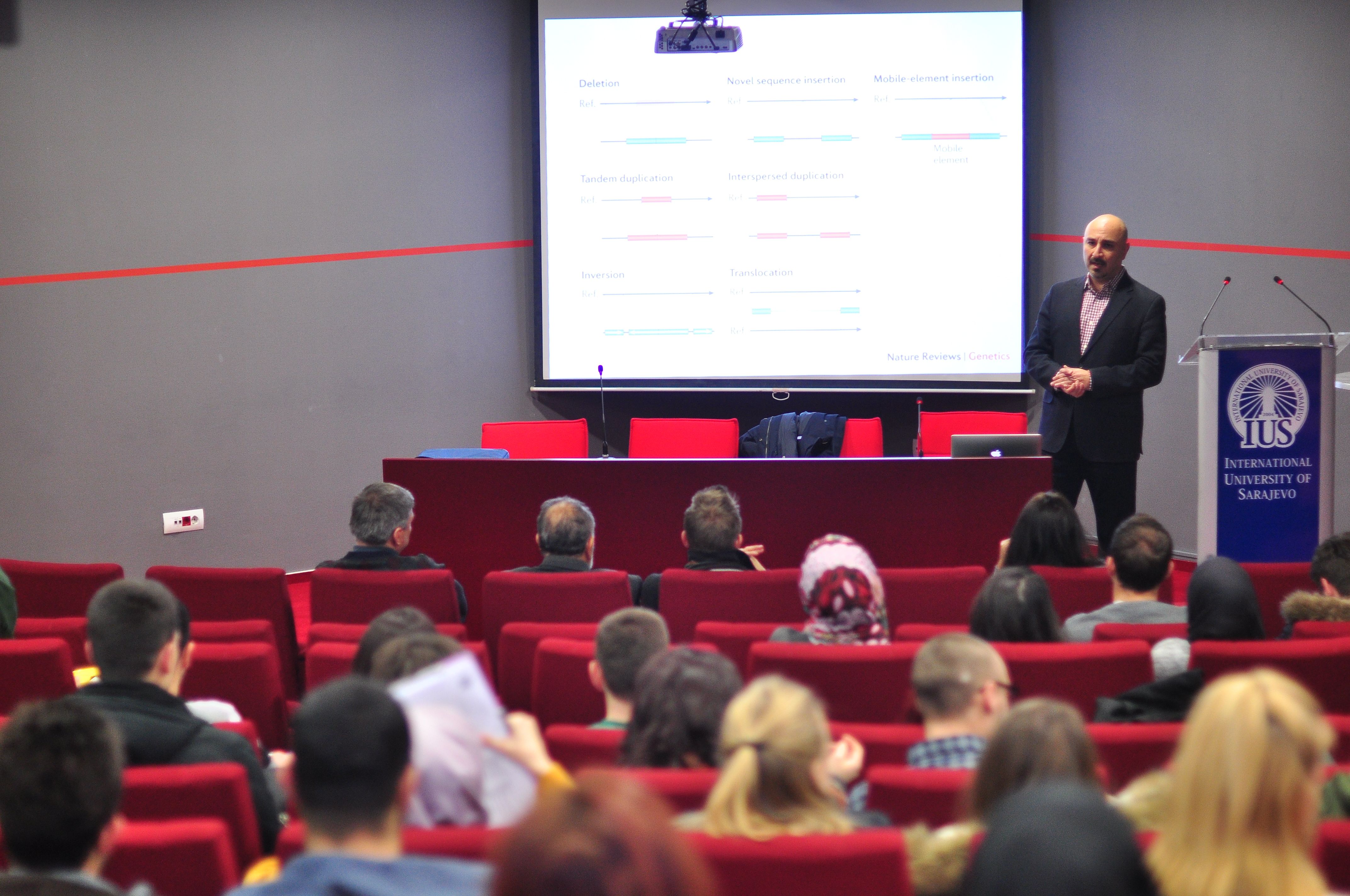 Prof. Sahinalp’s area of research interest includes bioinformatics, theoretical computer science and algorithms. The topic of the lecture was ''Data driven research in (cancer) genomics’’. The existence of individual sequenced genomes of thousands of different people in some countries is already a reality and the need for better and more efficient algorithms has grown more than ever before. Prof. Sahinalp specially talked about the development of algorithms in our own laboratories and scientific (computational and other) challenges that lie before us by having a large genomics data. These algorithms combine combinatorial techniques in addition to basic and more advanced algorithmic techniques such as data compression, streaming, memory hierarchy and the parallelization (data compression, memory hierarchy awareness and parallelization). At the end of the lecture, students and other guests had the opportunity to talk with Prof. Sahinalp, discuss and ask questions, including those related to creating future cooperation.