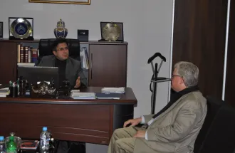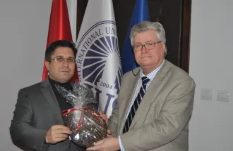 ''We can clearly discuss of discriminatory practices related to Memorials, which can be characterized as human rights violations. Perpetrators have no shame for what they have done. It's a horrible apartheid that should not be accepted as a measure of our future'' - said Prof. Dr. David Pettigrew. IUS Rector, Prof. Dr. Yücel Oğurlu welcomed distinguished guest in his office after the lecture. During the meeting, Prof. Pettigrew said that he was very pleased to deliver a lecture at IUS as well as visit the University and establish cooperation with the Faculty of Law (FLW) who organized this lecture.