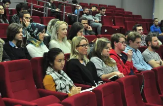 Professors Meissa Kinnear, Peter Newton and Alex Towler from Architecture program of the Oxford Brooks University in Oxford (England) and their 25 students, visited the International University of Sarajevo (IUS) on Friday October 30, 2015. This visit was organized at the initiative of assistant from Architecture program of IUS, Lejla Dizdarević, in coordination with the International Relations Office and the Public Relations Office of IUS. The hosts were professors and assistants from IUS Architecture program. During their stay, IUS professor Adnan Zoranić gave a lecture to students in the IUS main amphitheater on city development through the prism of socio-economic aspects. Students from Oxford together with IUS students presented their research and potential examples of city development and uses of urban space. They also discussed the possibility of intensifying cooperation between IUS and Oxford Brooks University through exchange programs for students and professors.