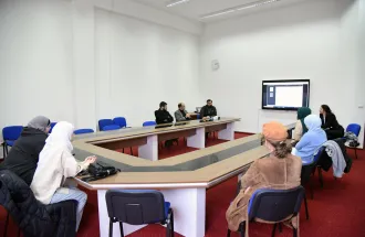 On February 4th, 2022, group of potential students registered for Psychology and International Relations program visited the International University of Sarajevo (IUS). After a brief presentation about IUS, Assistant Professor Dr. Aliaksandr Novikau; Assistant Professor Dr. Jahja Muhasilović and Associate Professor Dr. Joseph Jon Kaminski had the opportunity to adress potential students of International Relations and discuss about the expectations and realities of this study program. Students were interested in finding out more about the curriculum, methods of teaching and extra-curricular activities.