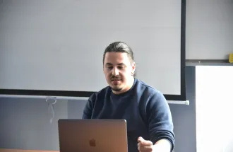 In a captivating installment of the Artist Talks series, the IUS Art Gallery recently played host to esteemed artist Denis Haračić at IUS. The event, which garnered significant attention from students and art enthusiasts alike, provided a unique opportunity for attendees to gain firsthand insights into Haračić's artistic journey and creative process.