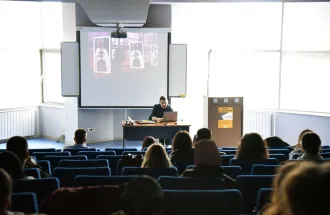 Attendees were treated to a visually stimulating journey as Haračić explored themes and concepts across various series of his works. Through his engaging presentation, students were able to witness firsthand how a certain motif evolves and transforms, breathing life into each piece with profound meaning and depth.