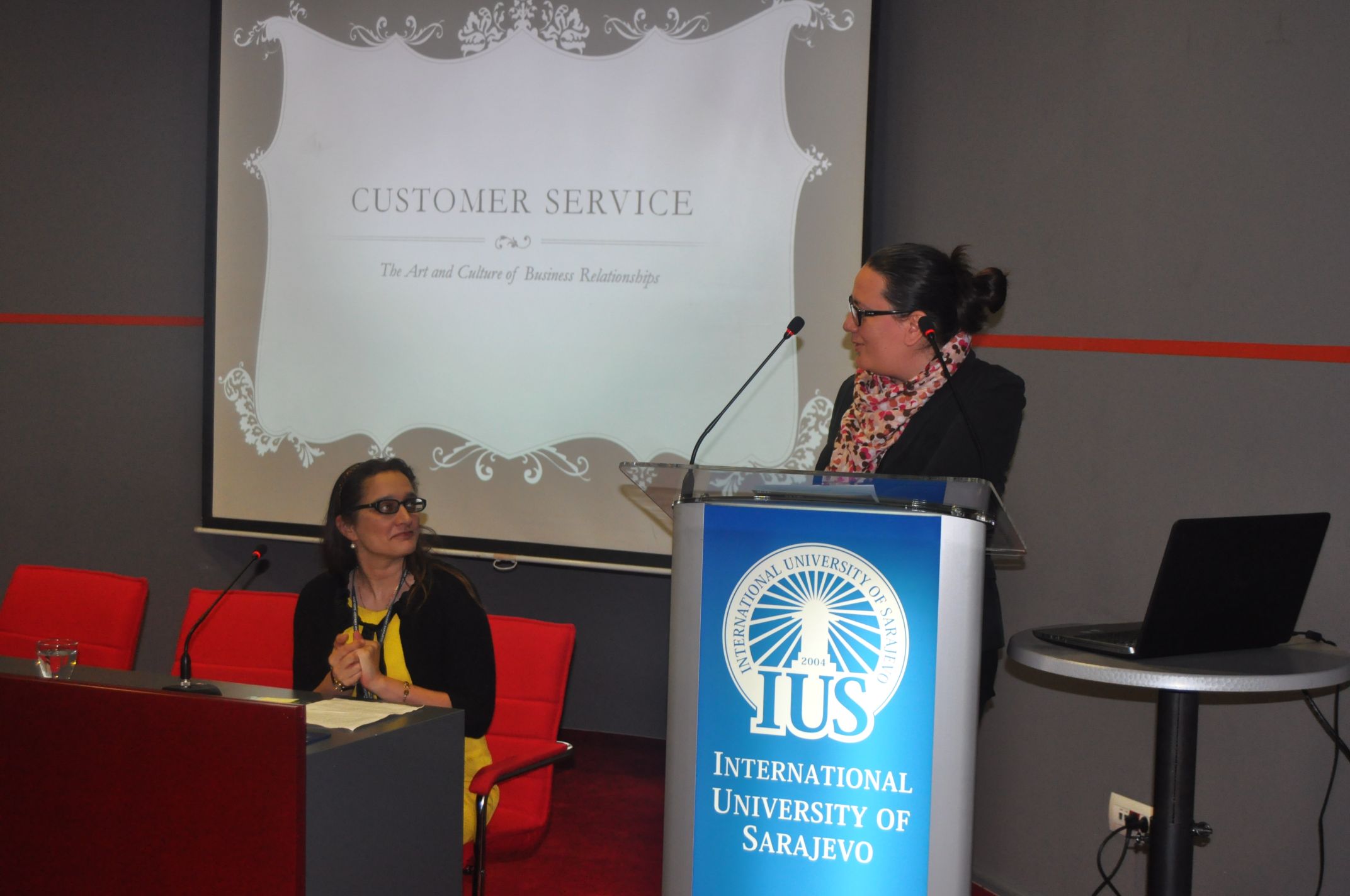 On Wednesday, 4th of April 2015, the International University of Sarajevo (IUS) hosted the representatives of the American Embassy to Bosnia and Herzegovina, Mrs. Ubah Khasimuddin, Office Management Specialist for the Regional Security Office and Elizabeta Delalić, Expert Advisor for Culture and Education. After a friendly welcome and an meeting with the Rector, Prof. Dr. Yücel Oğurlu, Deans and Directors of IUS Centers, as well as heads of other departments of the University, Mrs. Ubah Khasimuddin gave a lecture on the topic "Customer service".