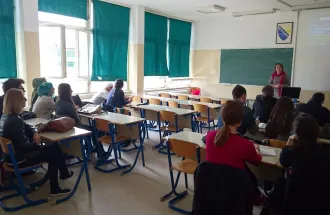 On Monday, 9 May 2016, professors and students of English Language and Literature program of International University of Sarajevo visited English department of the University of Zenica. ELIT Program Coordinator Assist. Prof. Dr. Nudžejma Obralić, Assist. Prof. Dr. Almasa Mulalić, Sen. Assist. Ervin Kovačević, and Sen. Assist. Emina Jelešković, met with the Head of English Department of the University of Zenica, Assist. Prof. Dr. Edina Rizvić-Eminović, Sen. Assist. Melisa Bureković and Sen. Assist. Feđa Imamović. They discussed different types of cooperation between the two programs and agreed on specific projects. ELIT students met with students of English Department of the University of Zenica. It was an opportunity for them to network and exchange ideas. The students attended a lecture on English Syntax. ELIT students and staff also visited Vranduk fortress, the seat of Bosnian kings dating back from 15 century (https://www.youtube.com/watch?v=ZzjDR-QZZTQ&feature=youtu.be).