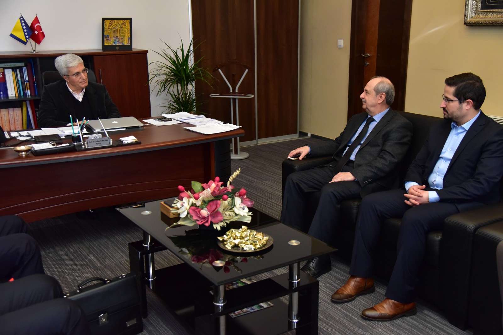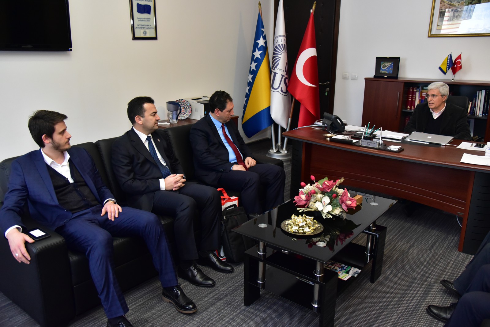 On Tuesday, January 17, 2017, representatives of the Ministry of Youth and Sports, together with the representatives of the Religious Affairs Administration of the Republic of Turkey visited IUS. At the meeting, present were: General Director of Youth Services Mr. Ahmet Uzak, Youth Sports Expert Şükrü Yılmaz, IUS Rector Prof. Dr. Tahsin Erkan Türe, Vice-Rector Assist. Prof. Dr. Faruk Berat Akçeşme, Education Coordinator of Religious Affairs Administration Mr. Mehmet Yasa, and Mustafa Dillioğlu, IUS graduate and the employee of the Religious Affairs.