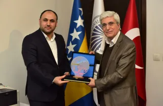 In the meeting, IUS Rector Prof. Dr. Tahsin Erkan Türe and the members of delegation had a discussion on continuing cooperation in joint projects, participation of international students in Erasmus exchange programs, about problems international students face in the new environment upon their arrival to IUS, their integration to Bosnian community, etc. It was agreed that there is a need to raise awareness about the presence of international students in BiH.