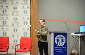 On May 17, 2022, Dr. Gretchen Knudson Gee, Professor at the Northern Arizona University, USA visited the International University of Sarajevo (IUS) and held an informative lecture titled "The Russian- Ukrainian War: Regional and Global Impacts". The lecture covered a very relevant topic of Russian invasion of Ukraine and its impact on the states all over the world.
