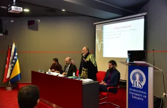 The defense started at 2 p.m. at the IUS Main Amphitheater in presence of the committee members, a number of FBA students and staff, and other guests. Šadi Fadda successfully defended his doctoral dissertation and as a result was conferred the title of Doctor of Economics.