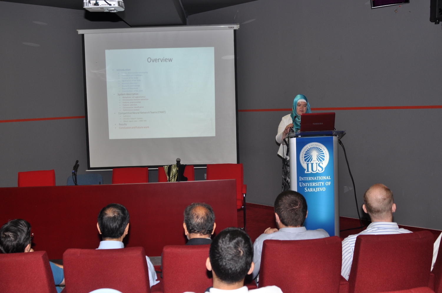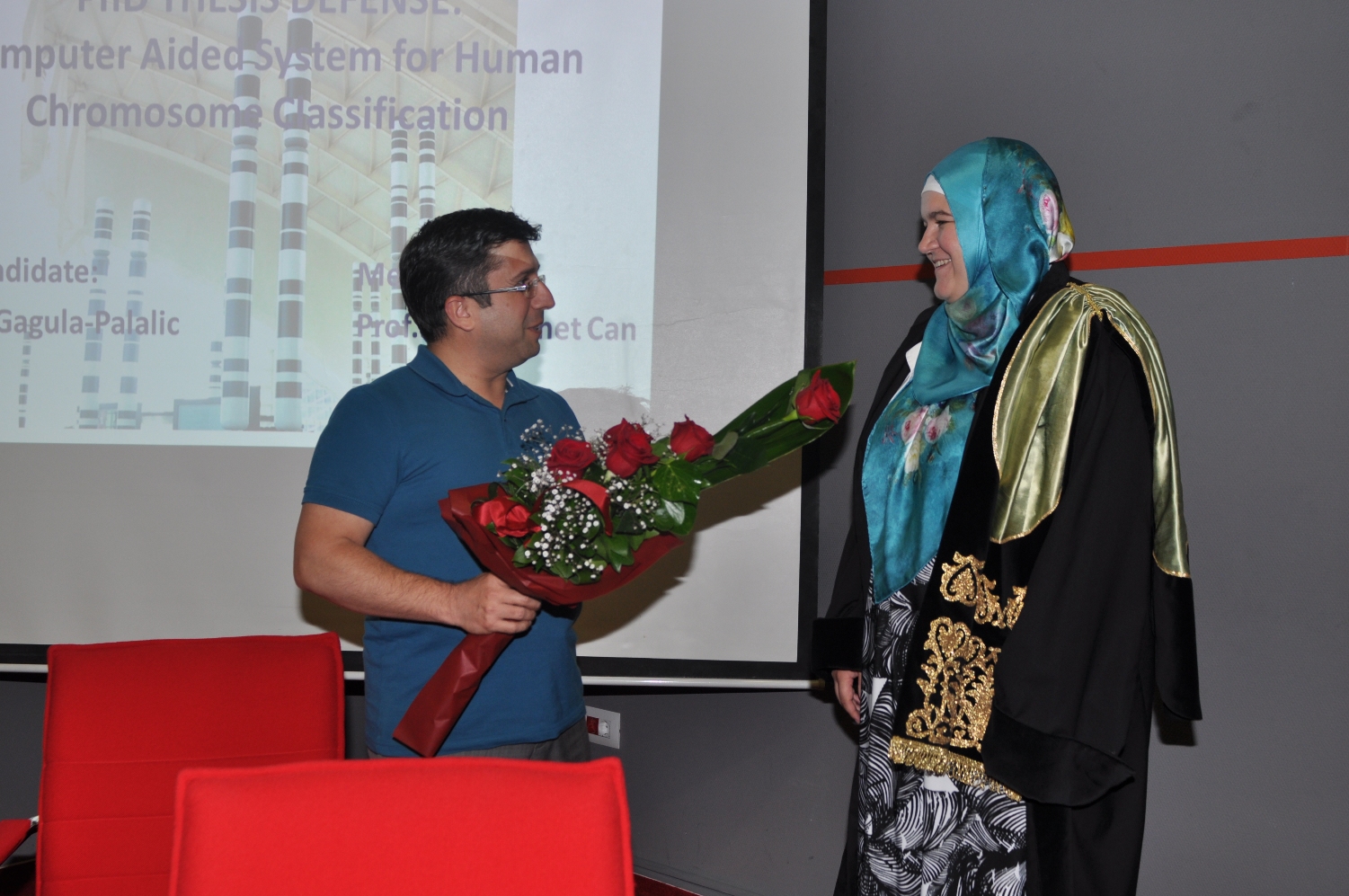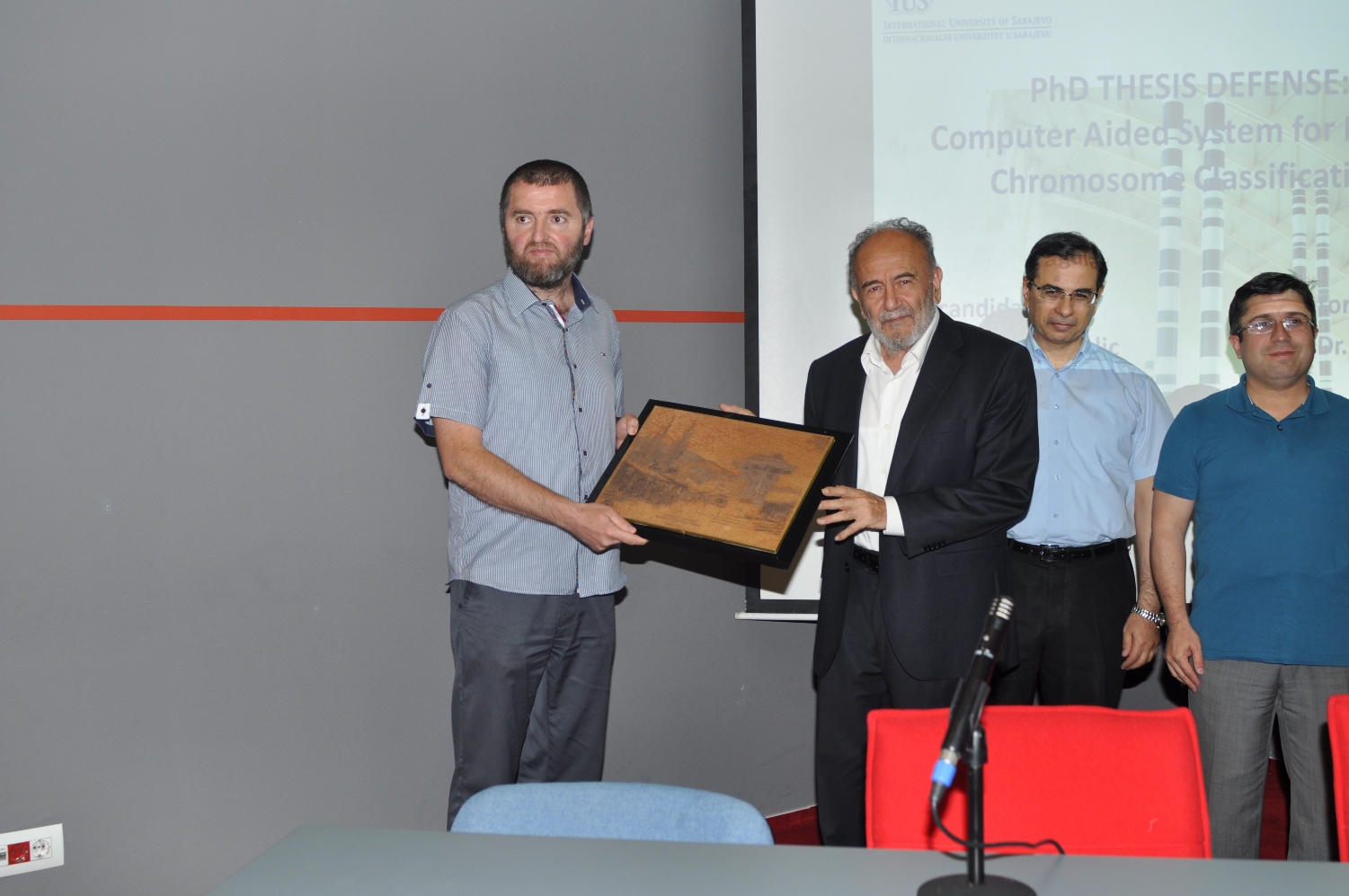 Ph.D. thesis defense of the candidate, Sadina Gagula-Palalić was held at the International University of Sarajevo (IUS) on Friday, July 4th, 2014. The candidate successfully defended her Ph.D. dissertation entitled ''Computer Aided System for Human Chromosome Classification” at the Faculty of Engineering and Natural Sciences (FENS). The Mentor of her Doctoral Thesis was eminent Emeritus Prof. Dr. Mehmet Can and Chairman of the Committee was Prof. Dr. Jasmin Velagić. The members of the Examining Committee were: Prof. Dr. Abdulhamit Subaşi, Assist. Prof. Dr. Haris Memić and Assist. Prof. Dr. Emir Karamehmedović.