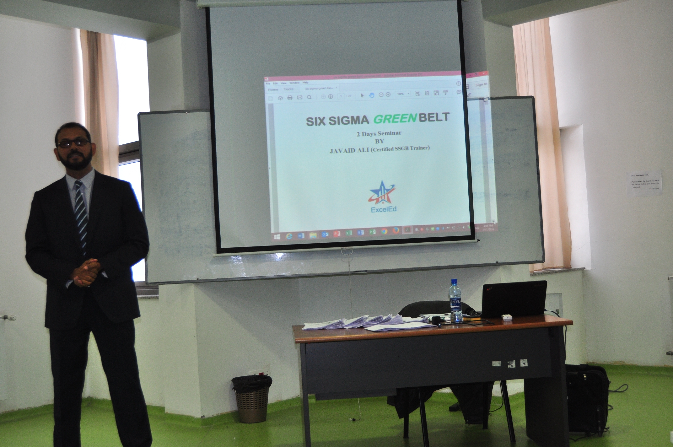 ''Six Sigma Green Belt” Seminar was successfully completed at the International University of Sarajevo (IUS) in the period from 21 to 22 January 2016. The Seminar was organized with support of the Leadership and Entrepreneurship Center (LEC) of the IUS. Lecturer at the Seminar was Ali Javaid, accredited expert in the field ''Six Sigma'' who has extensive work experience in this area. During his career, he also obtained a significant number of certifications and specialized training such as IT Business Manager Certification, Six Sigma Black Belt Professional, Cobit5-F Certification, and he also took the training in the field of Risk Management that he successfully completed in the United States. Ali Javaid is currently engaged as trainer in the field of Management Information Systems at the University in United Arab Emirates.