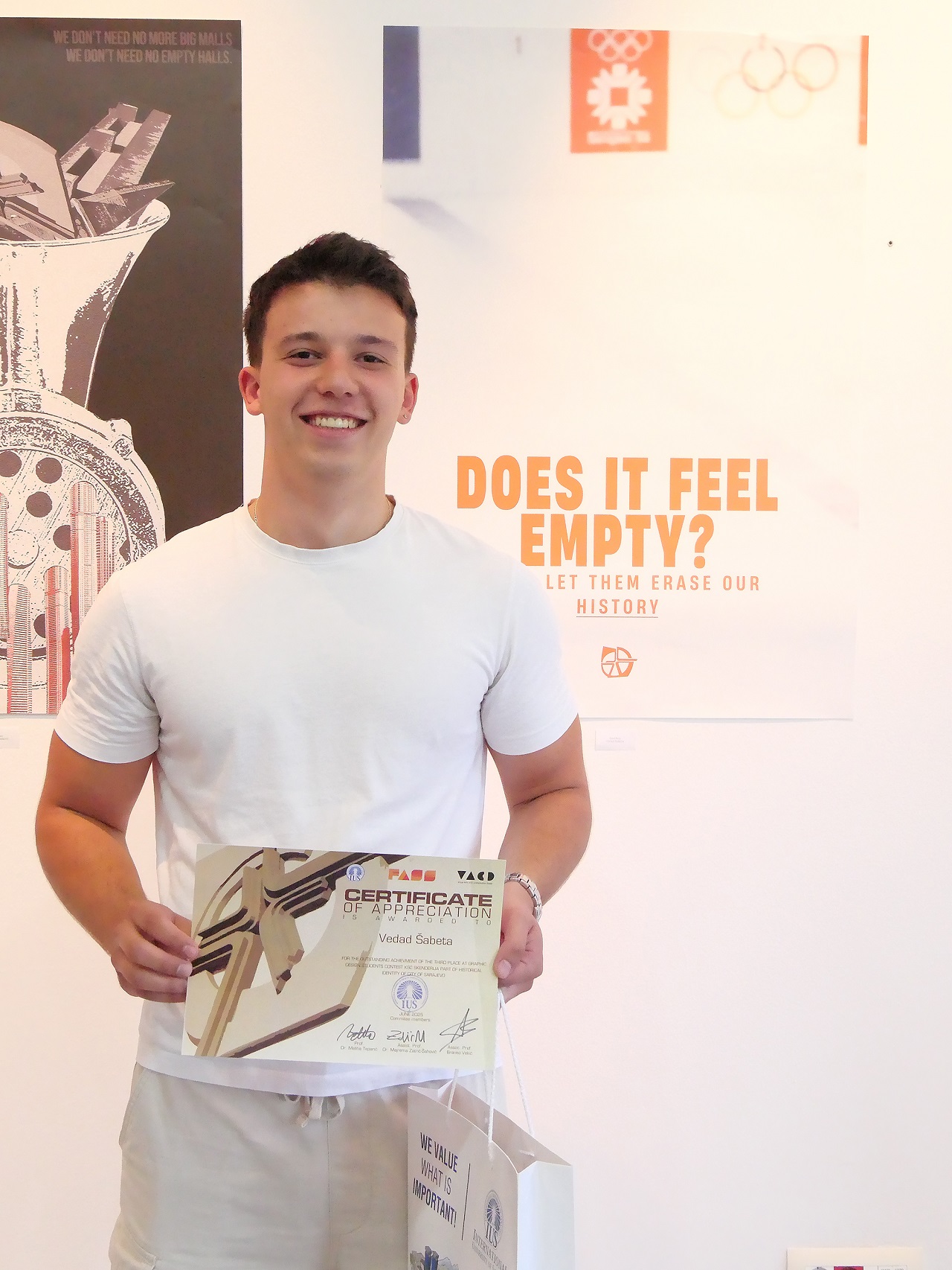 On Wednesday, June 4, 2025, the IUS Visual Arts and Visual Communications Design (VACD) study program organized an exhibition titled “KSC Skenderija – Part of the Historical Identity of the City of Sarajevo” at the IUS Art Gallery. The exhibition featured works by students attending the Graphic Design course taught by Associate Professor Branko Vekić, MFA.