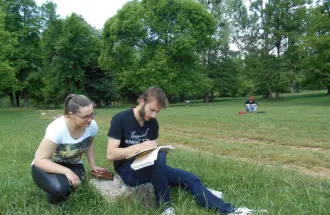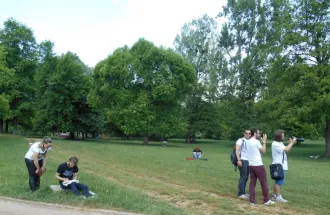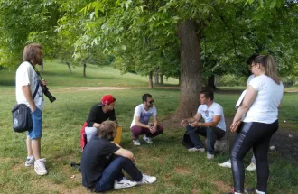 Following the syllabus scheduling for VA 340 Film Grammar and VA Visual Language, held by senior assistant Roman Sulejmanpašić, the joint outdoor classes outside of the IUS campus were organized by Assoc. Prof. Dr. Lejla Panjeta. On Wednesday, May 20th the students of these two courses visited the lake in Stojčevac in order to filed-work on the tree studies and pro-filmic space exercises. The aim of these practices is to be oriented in the film space and work on the 180 degree rule, as well as to focus on the color and visual characteristics of the landscape.
