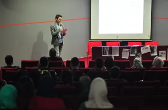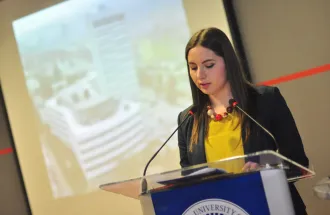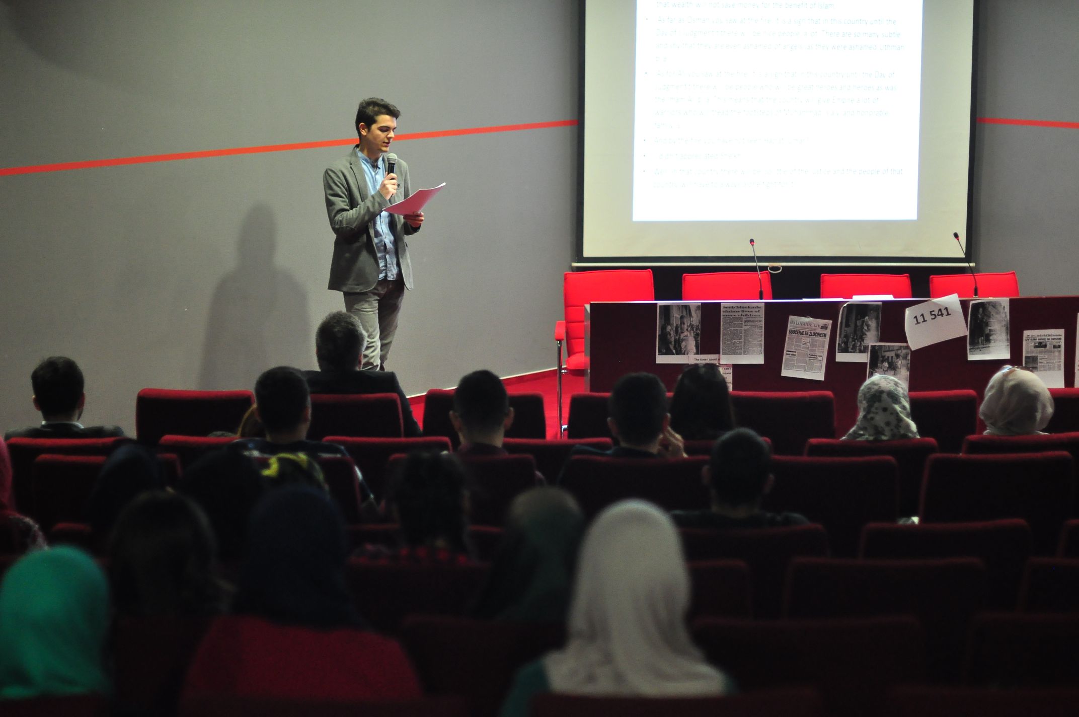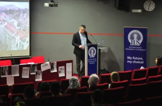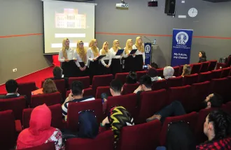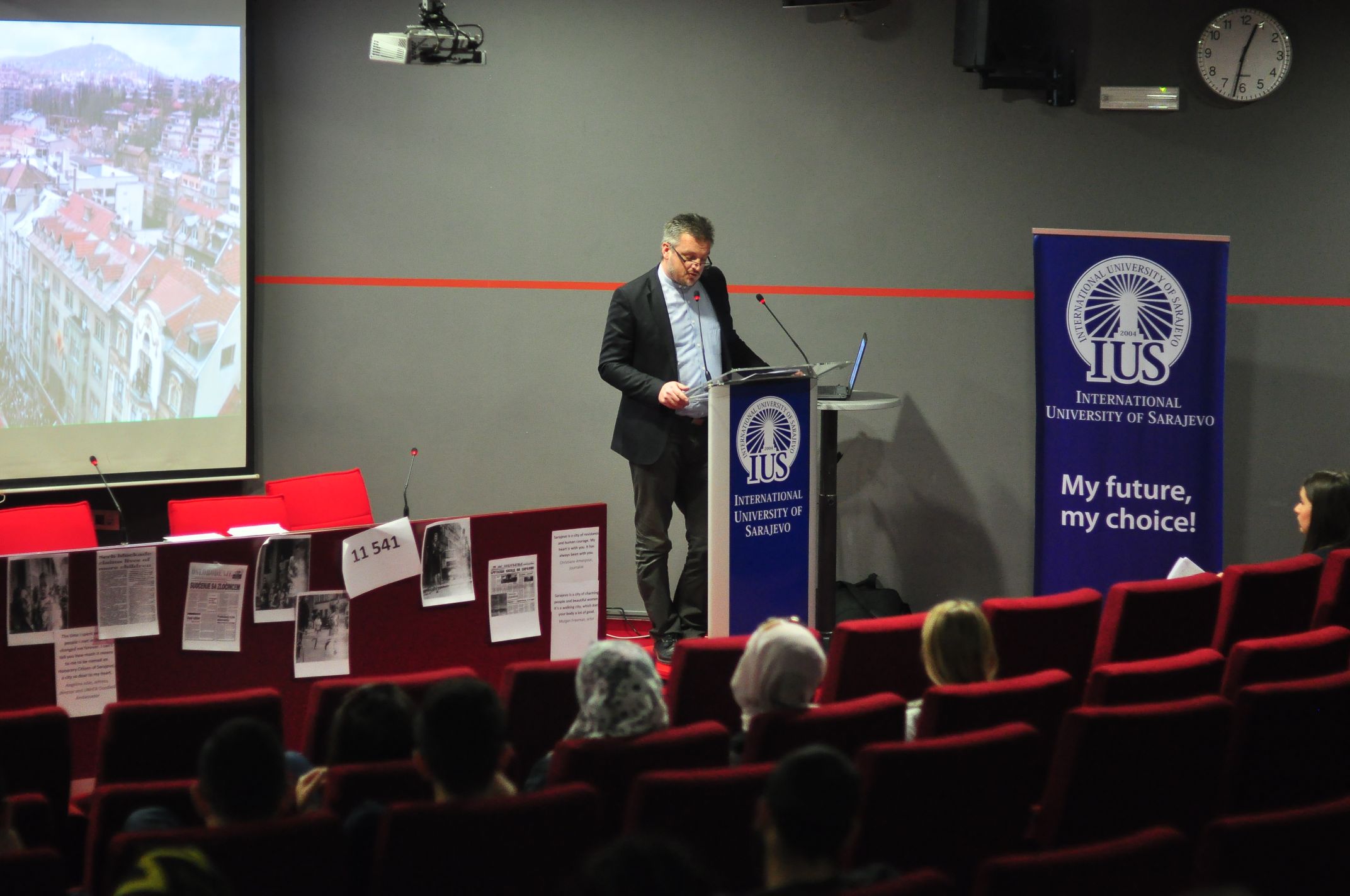 On Wednesday, 6th of April, 2016, IUS students organized an event dedicated to the anniversary of "City Day" of Sarajevo which was under the longest siege in the modern warfare. President of Student Parliament of IUS Nedžla Greda and President of Performance student club Mirza Rastoder performed a musical-drama performance to auditorium in IUS main amphitheatre. By singing songs, showing videos, reciting famous verses which are related to Sarajevo, they presented the most important information about history of Sarajevo from Ottoman Empire until today.