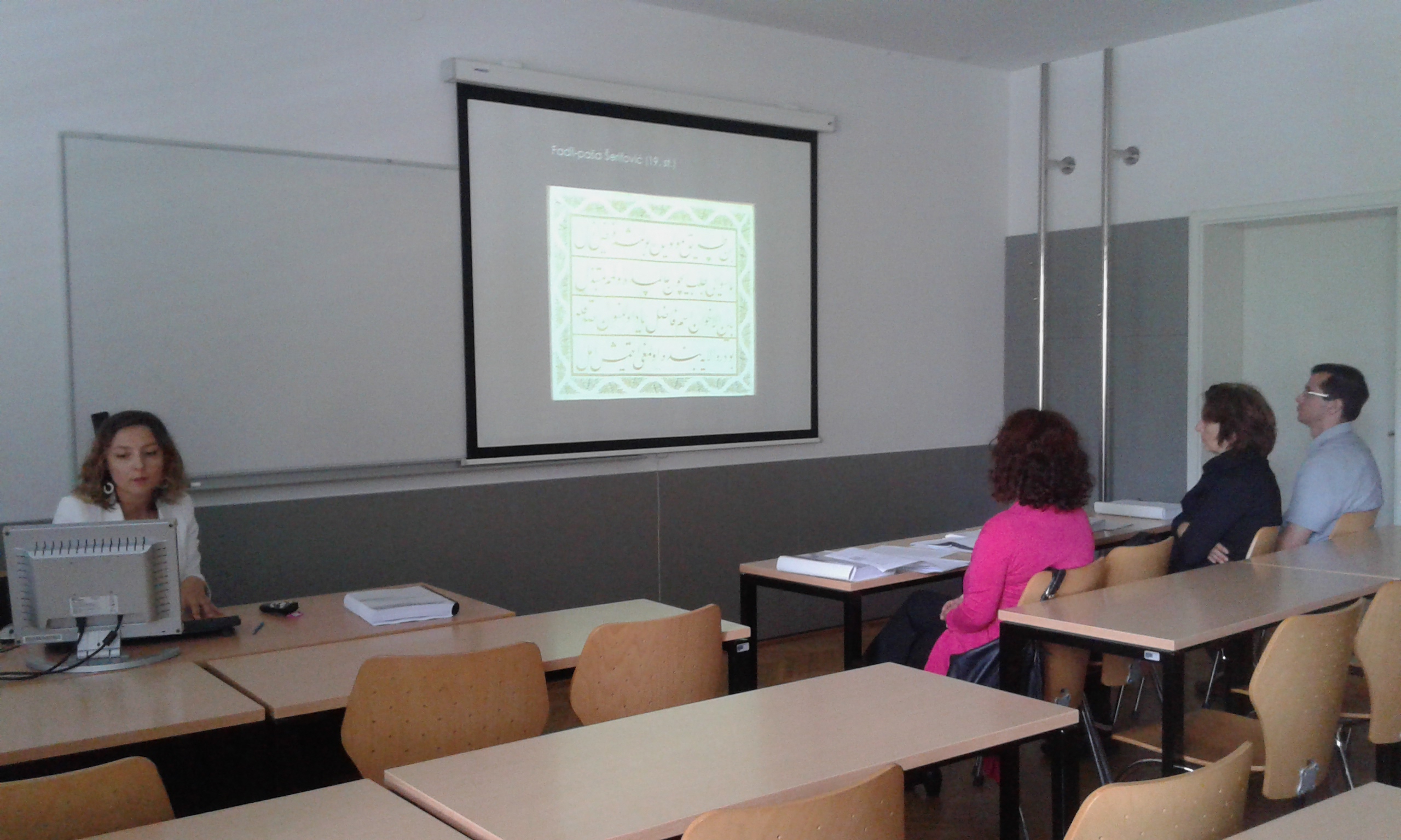 Assoc. Prof. Dr. Meliha Teparić successfully defended her doctoral dissertation on September 19, 2016 at the University of Zagreb, Faculty of Humanities and Social Sciences, History of Art Department, titled “Analysis of Calligraphic Panels of Bosnian Calligraphers from the 18th to mid-20th century.” The dissertation explores calligraphy art heritage in Bosnia and Herzegovina. She defended her dissertation before the following Committee Members: Prof. Dr. Sc. Ćazim Hadžimejlić (University of Sarajevo), Prof. Dr. Sc. Tatjana Paić-Vukić (Croatian Academy of Sciences and Arts - HAZU), Prof. Dr. Sc. Sanja Cvetinić (Faculty of Humanity and Social Sciences) and Dr. Danko Šourek, (Faculty of Humanity and Social Sciences).