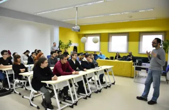 The debate on artistic or technical features of the film script is still an unsolved issue in film studies. Academically and from industry point of view, Prof. Fajkovic, who was lecturer at the Sarajevo Film Academy, explained the most important rules in script making process, as well as the connection with the audience and production. He also shared his experiences on drama writing for the theatre and introduced students to the profession of dramaturge, which he currently performs for the Chamber Theater 55, one of the most important Sarajevo theaters.