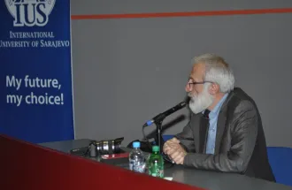 On Wednesday, May 21st, 2014, an interesting lecture titled “Is the new world war possible?” was held in the ground amphitheater of the International University of Sarajevo (IUS). The lecturer was Mr. Süleyman Gündüz, an eminent lecturer and researcher of political events in the Middle East, who dedicated his life to the study of conflict and research on peace.