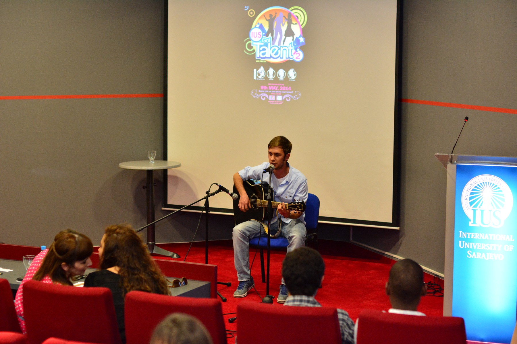 This year's ''IUS Got Talent" show was held in the large amphitheater of the International University of Sarajevo on Friday, May 9th, 2014 in organization of the Intercultural Communications Club. Each year, this club is successfully organizing the “IUS Got Talent'' show which gathers talented IUS students to compete in various fields such as singing, playing, acting, performing traditional and modern dances, as well as other artistic disciplines.