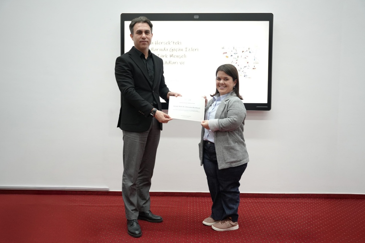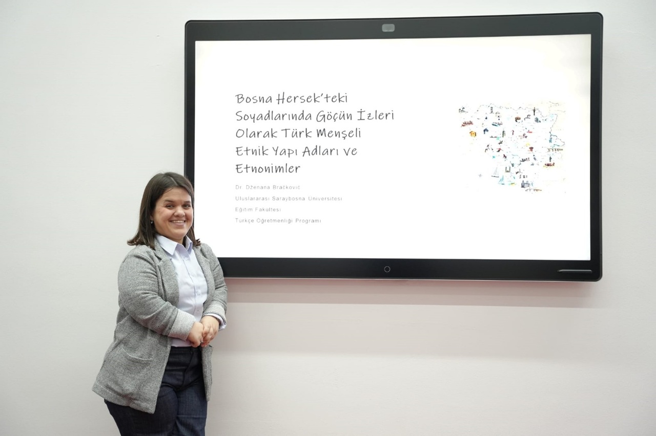 The first “Turkology Talks” session was held on Thursday, March 26, 2026, featuring a presentation by Dr. Dženana Bračković, TLT Program Coordinator, titled “Active Structural Names and Ethnonyms of Turkish Origin as Traces of Migration in Surnames in Bosnia and Herzegovina.”