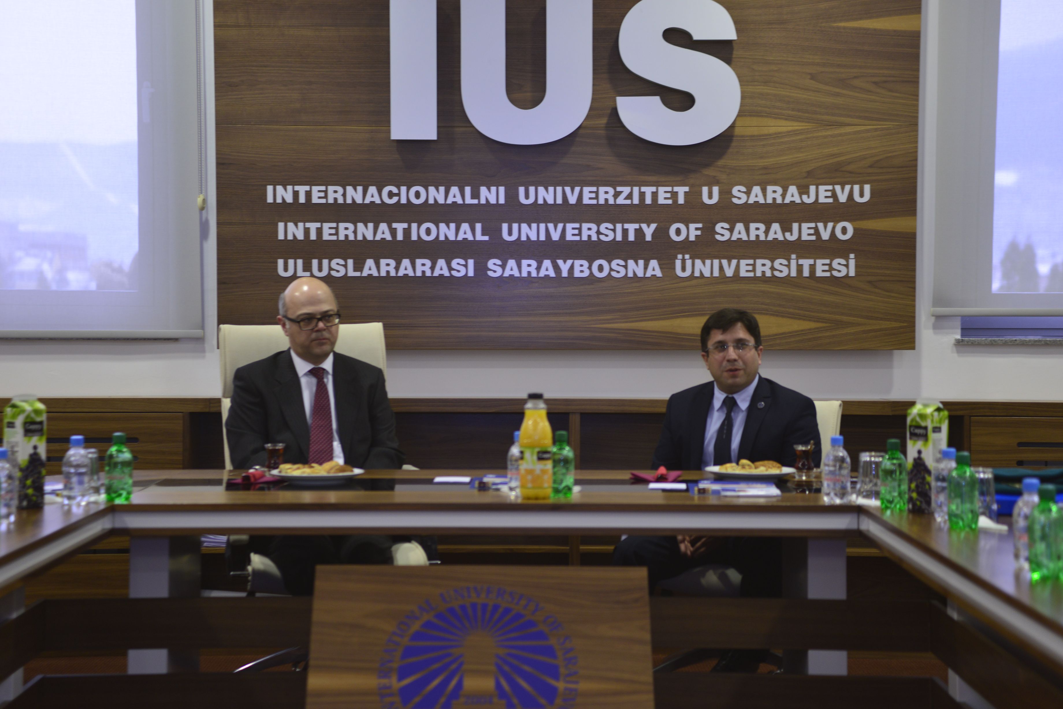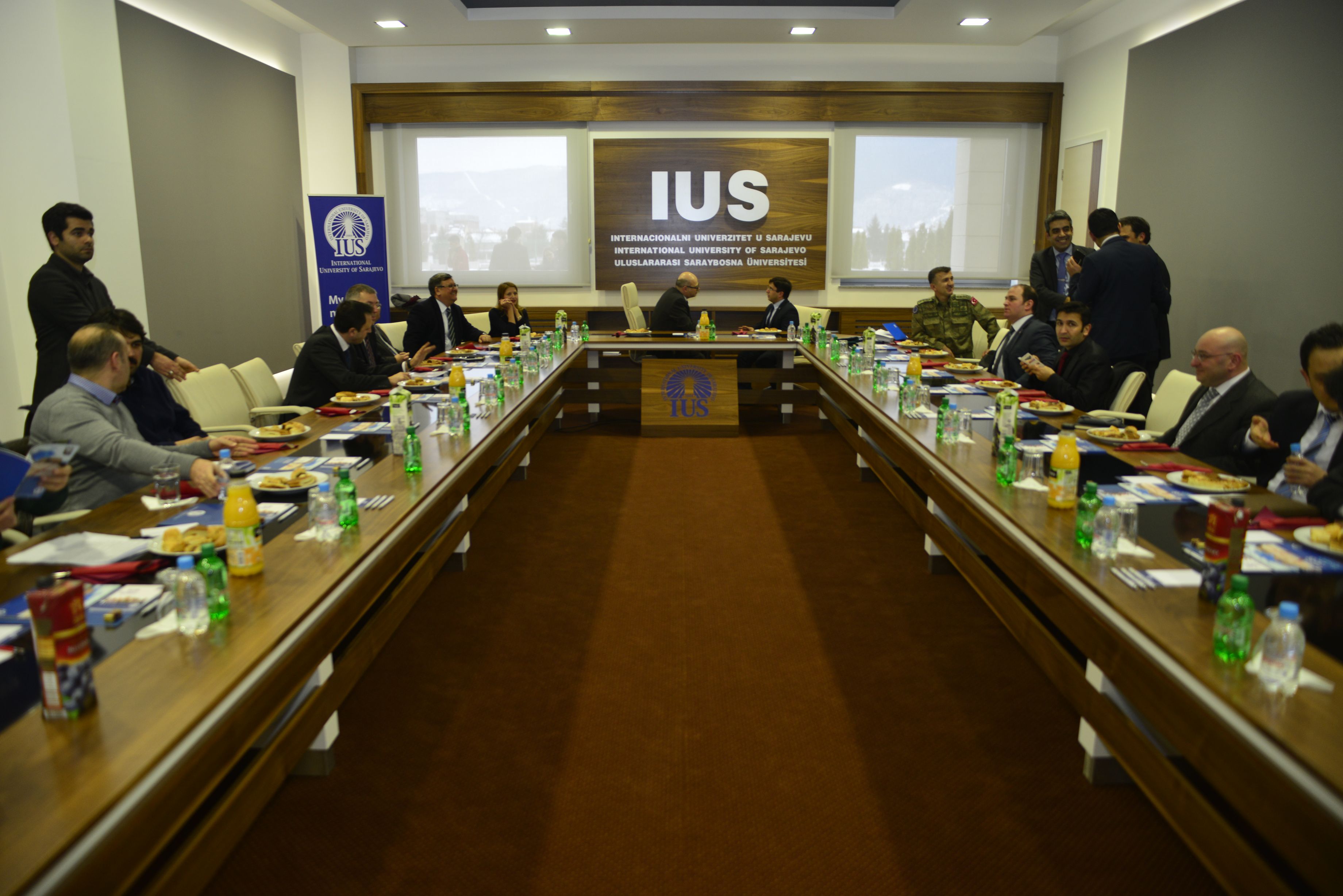 Issues of mutual collaboration and coordination were discussed. Rector Oğurlu presented the latest progress report from the International University of Sarajevo. In addition, four IUS centers (IUS Life Long Learning Center, IUS Research and Development Center, IUS Leadership and Entrepreneurship Center and IUS Balkan Study Center) were presented by their managers who shared mission and vision of these institutions to this respective audience.