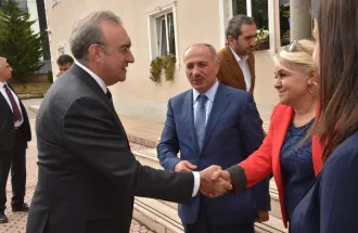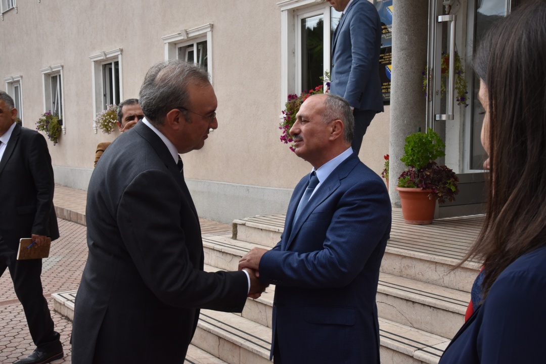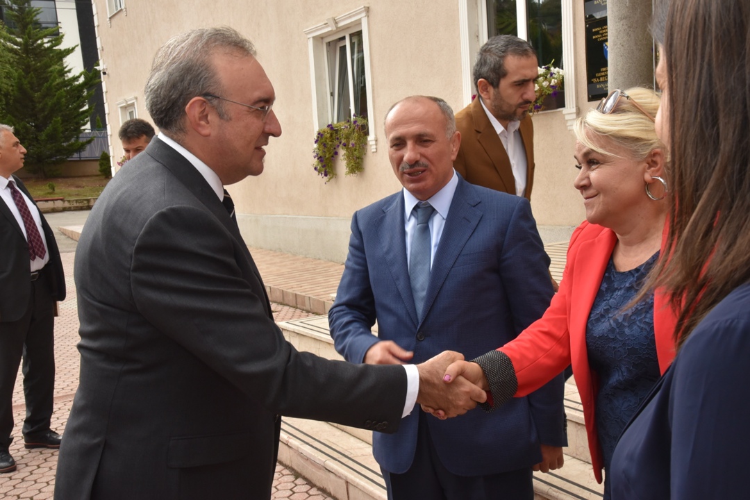 Ambassador Koç visited the elementary school premises, talked to students and met with the president of Foundation for Education Development Sarajevo, Mr. Hasan Toplaoğlu, elementary school principal Nezira Popovac, and high school principal Mubera Halilčević. Mr. Mehmet Akif Yaman, director of Yunus Emre Institute, was also present in the meeting.