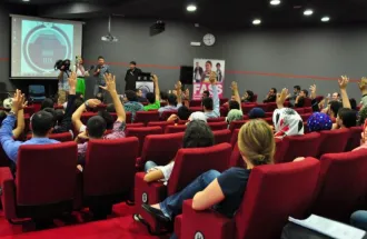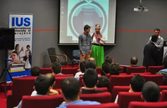 In the IUS amphitheatre, Mrs. Iqbal Gürpınar gave a speech where she reminded the students through practical advices on how important is to build knowledge and communication skills in their interactions with people. To everyone's content, our dear guest sang a song with Mr. Orhan Çakmak.