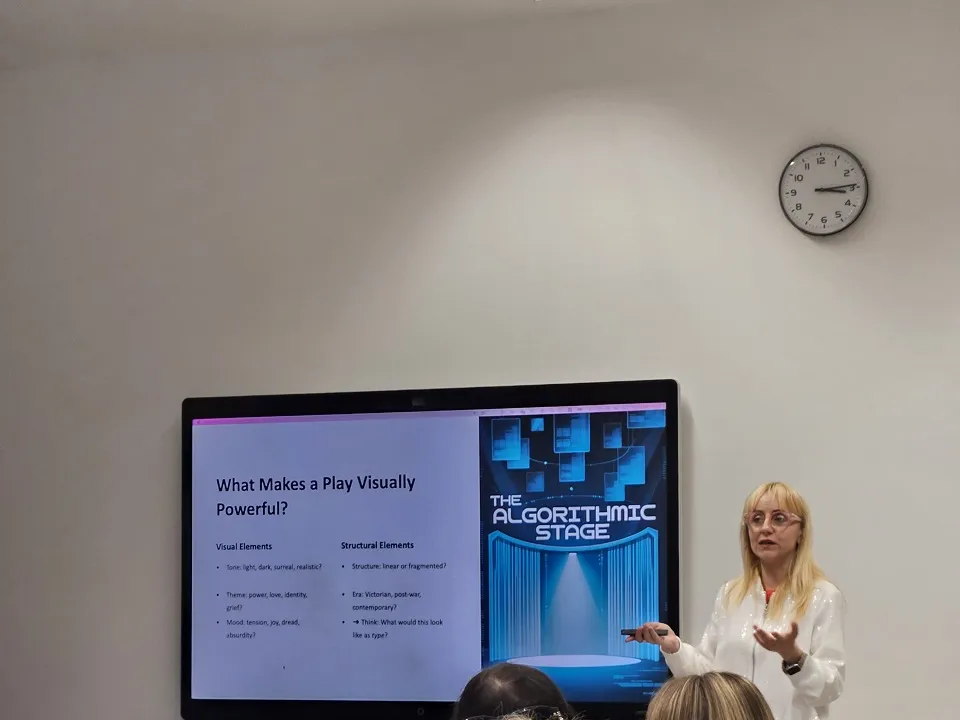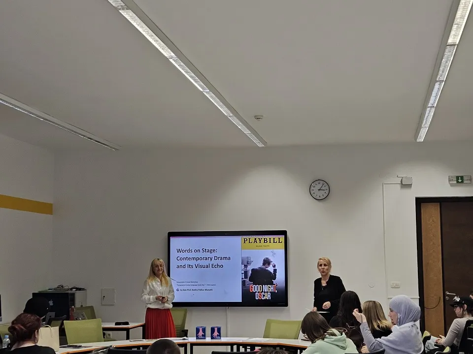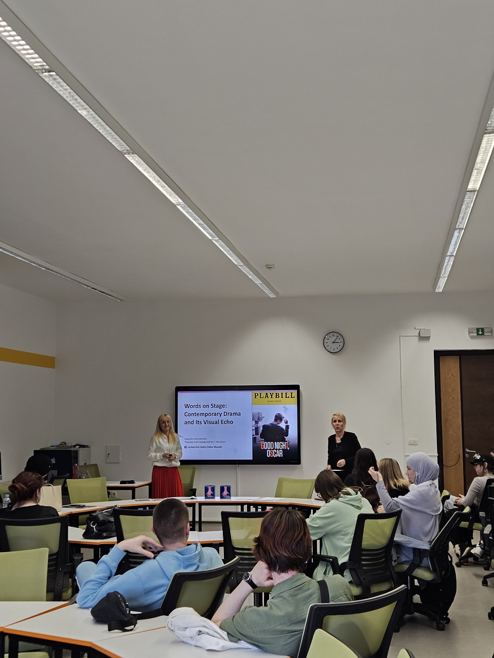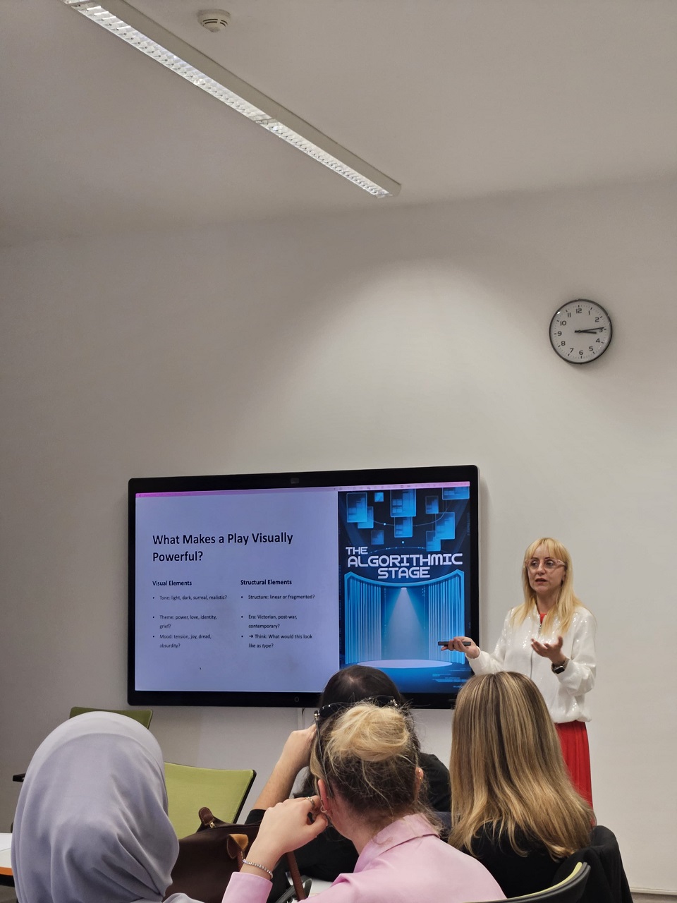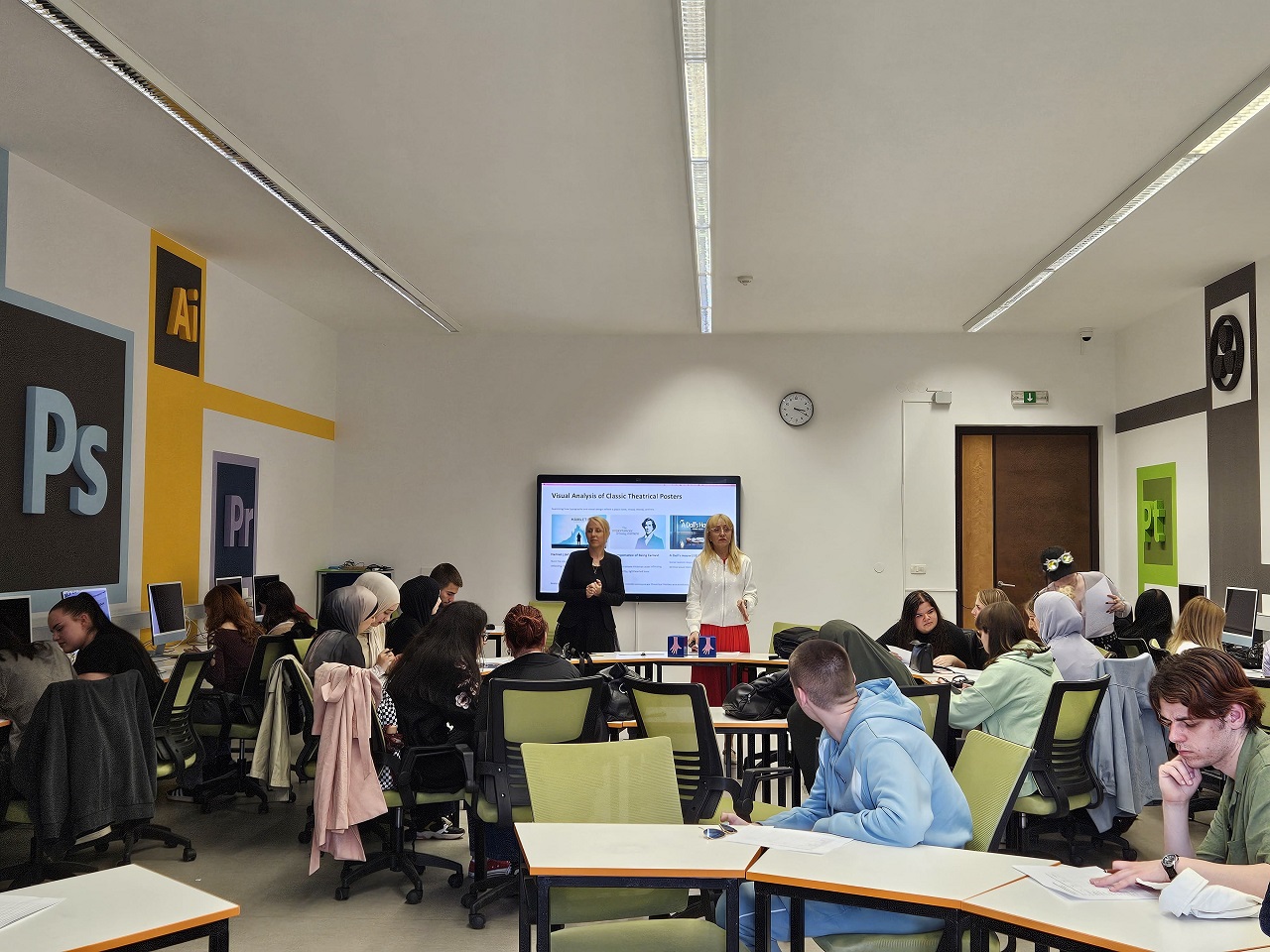 On Thursday, May 22, 2025, the IUS Visual Arts and Visual Communications Design (VACD) program had the honor of welcoming Assistant Professor Dr. Nadira Puškar-Mustafić as a guest lecturer in the Typography II course (VA304), taught by Assistant Professor Nejira Mulahmetović, MA. The session, titled “Words on Stage: Contemporary Drama and Its Visual Echo,” offered a unique interdisciplinary perspective.