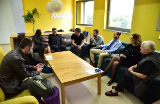 Youth Theatre Sarajevo delegation visited IUS in regard to the signing of the Memorandum on Cooperation according to which the academics and students of VACD department will cooperate with the artists form the theatre on projects related to visual identity and creative solutions for advertising like web banners, video clips, trailers, photography, posters, flayers, sculpted props, set design, etc.